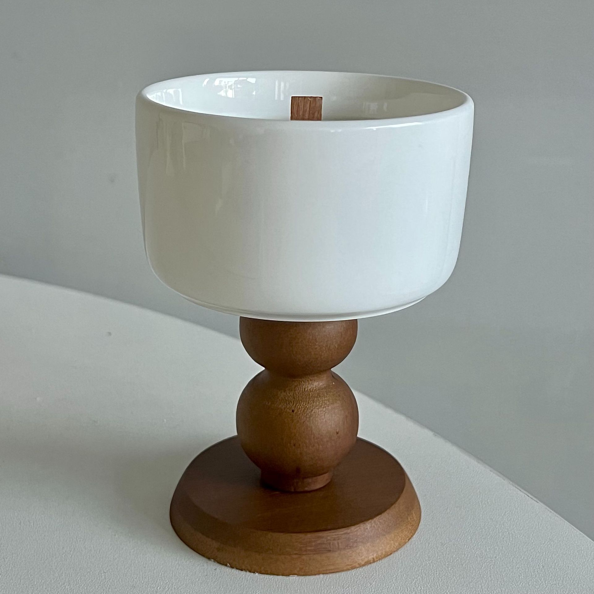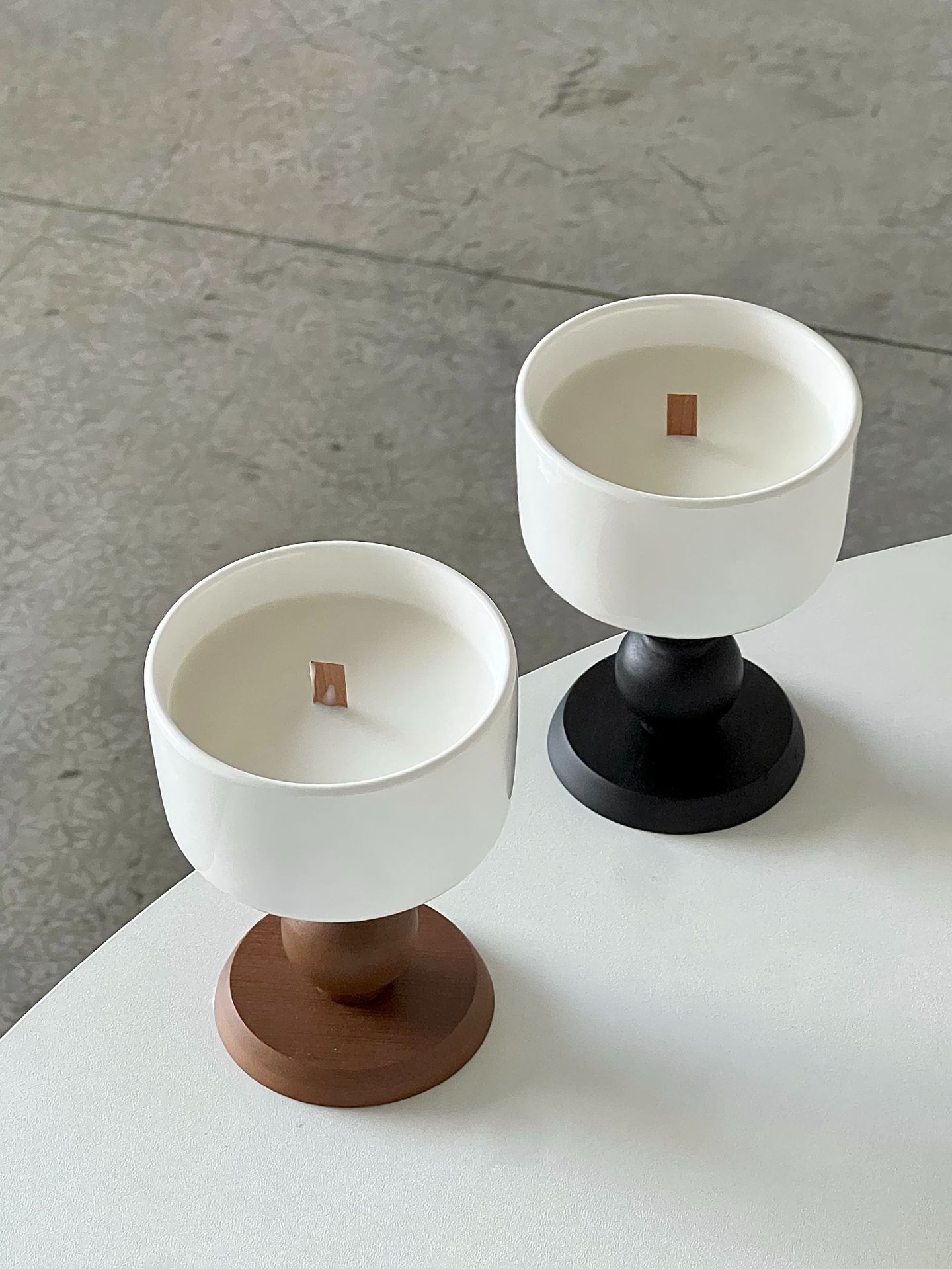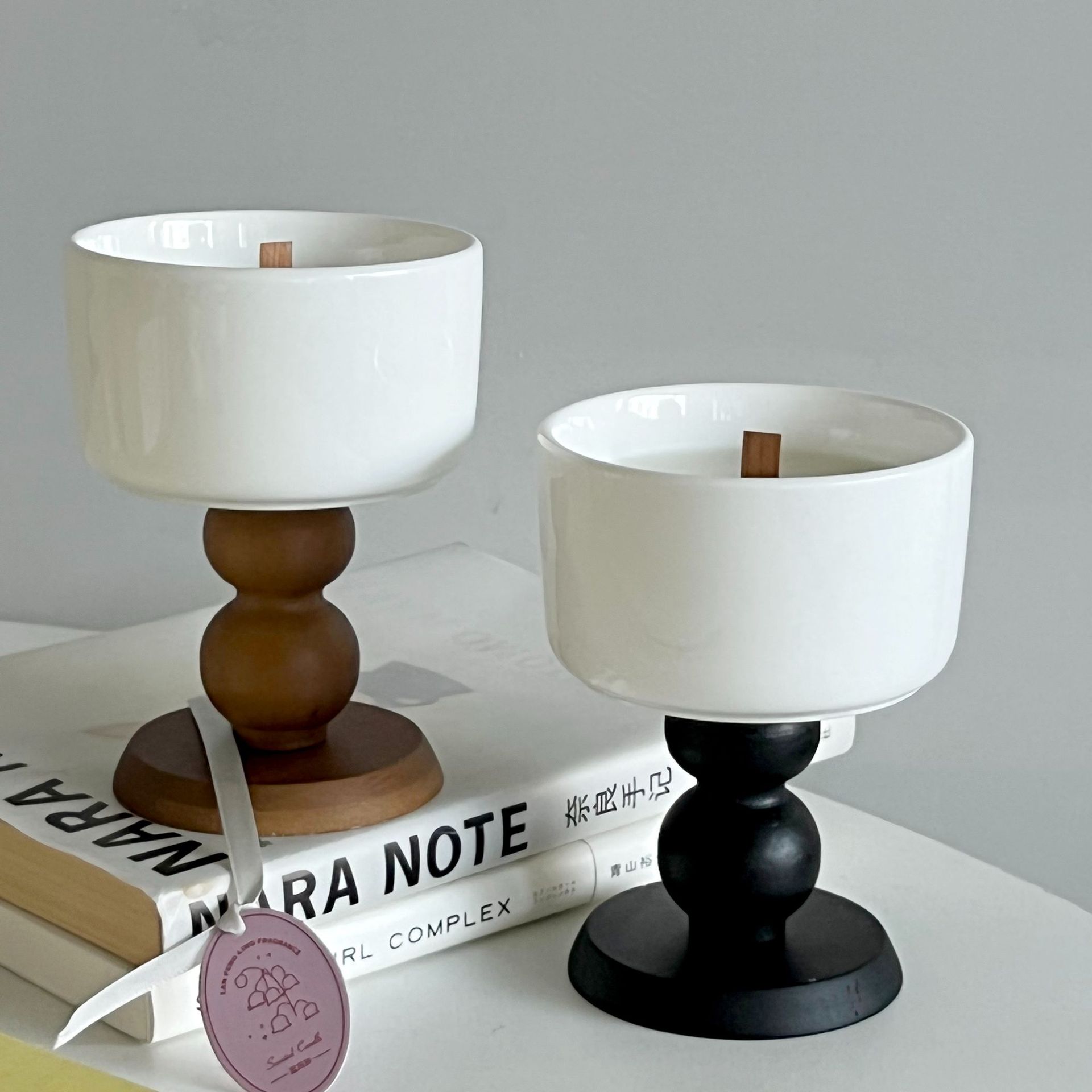高级感原木高脚陶香薰瓷烛台摆件 小众艺术摄影道具民宿蜡烛杯