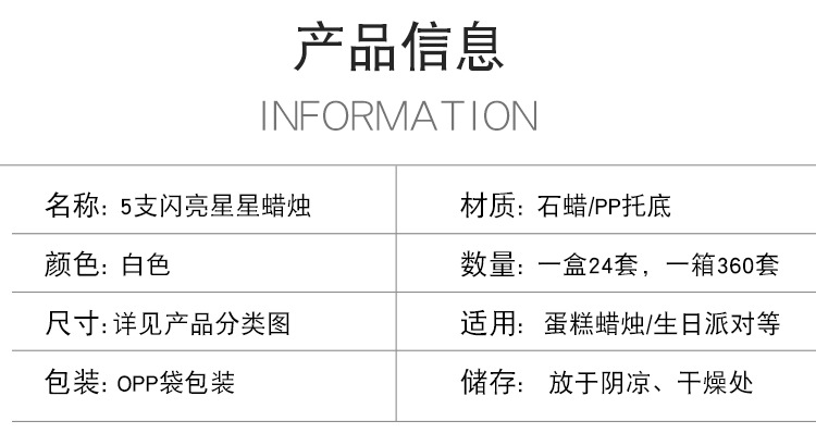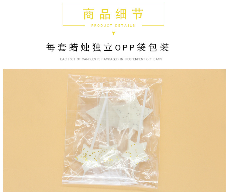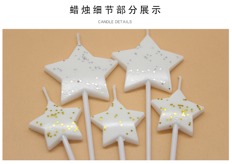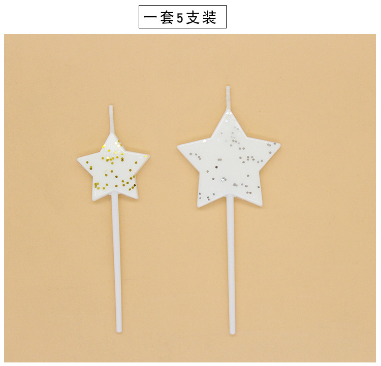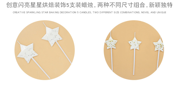 批发闪亮五角星组合蛋糕装饰5支装蜡烛节日派对布置闪粉星星蜡烛
