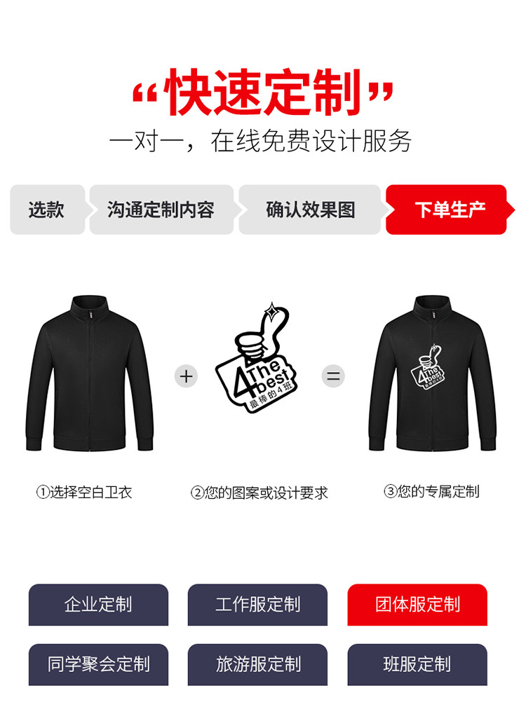 企业工作服聚会活动班服订 做印logo秋冬款薄款立领拉链卫衣定 制