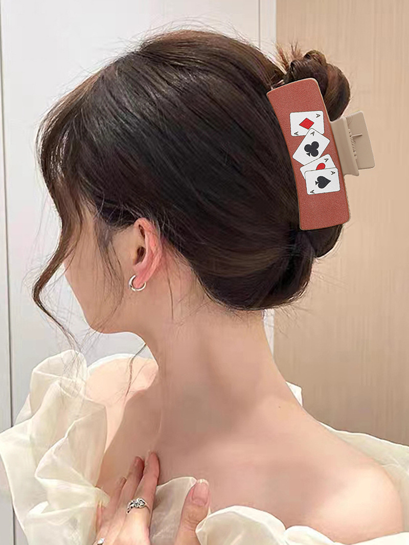 西部牛仔风复古扑克牌发饰发夹皮革印花鲨鱼夹抓夹欧美跨境亚马逊