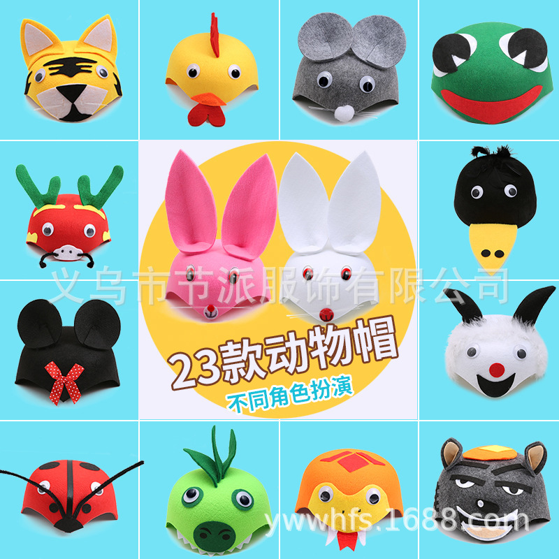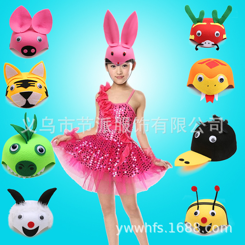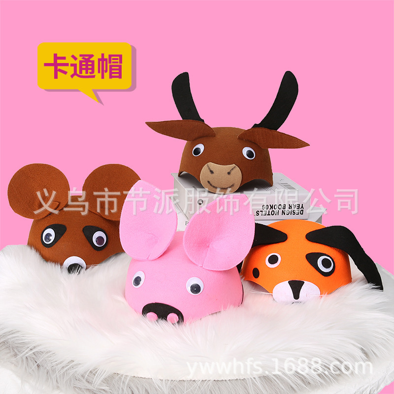儿童卡通帽聚会表演动物帽子恐龙十二生肖cosplay幼儿园演出道具