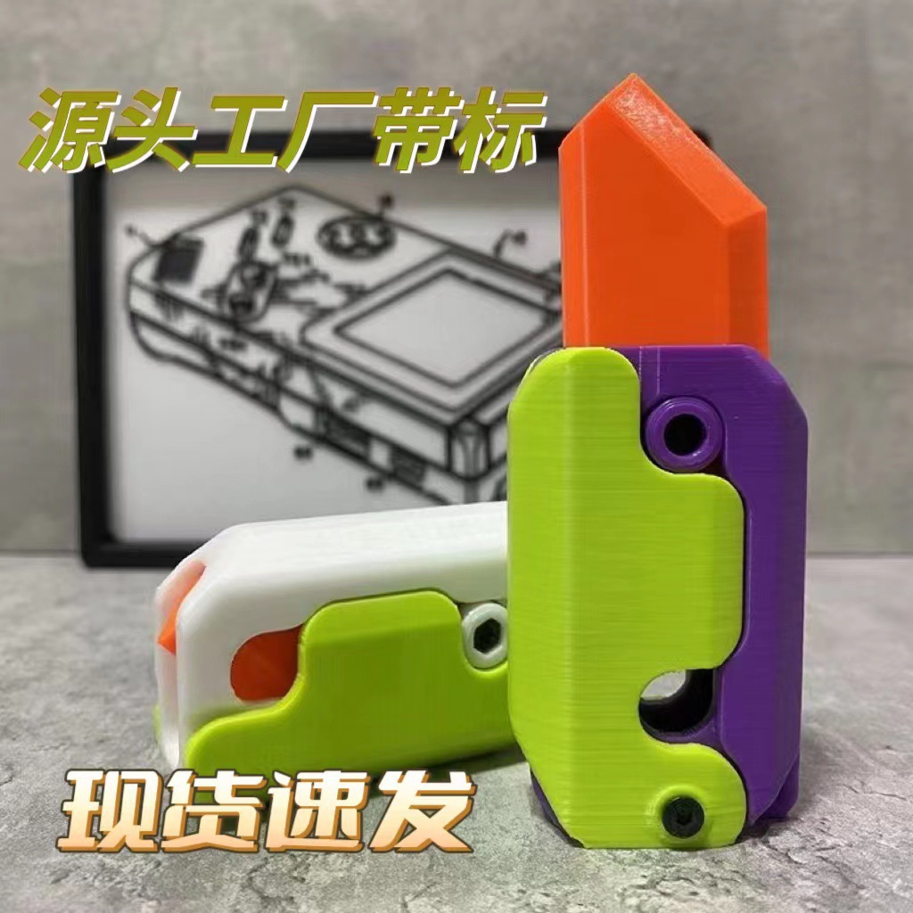 【现货代发】夜光3D重力小刀萝卜刀解压推牌小玩具打印荧光小萝卜