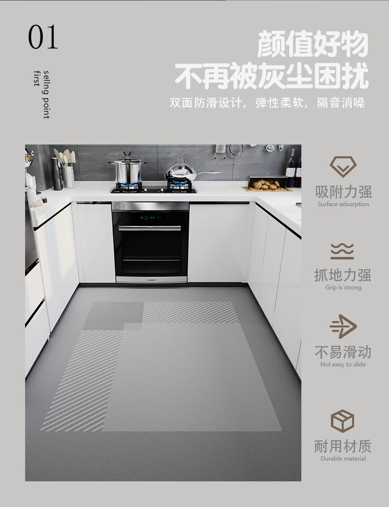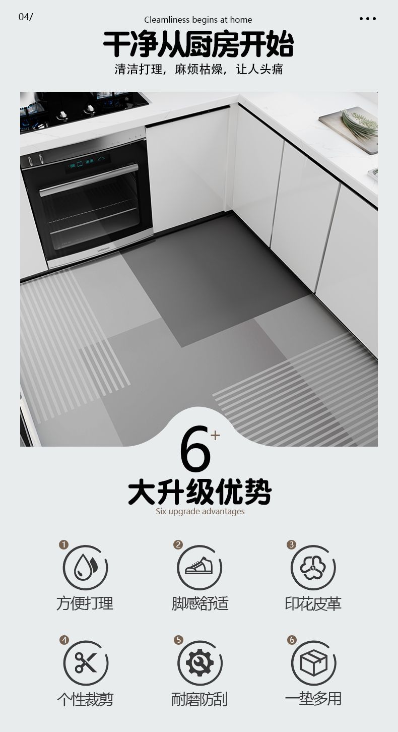 现代简约皮革地垫家用防水防油厨房地垫可裁剪pvc耐磨地垫全铺