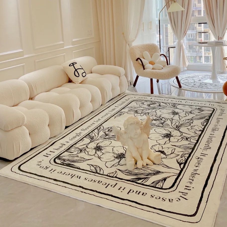 家居INS风客厅地毯全铺黑白简约客厅仿羊绒地毯卧室毛绒隔凉地毯