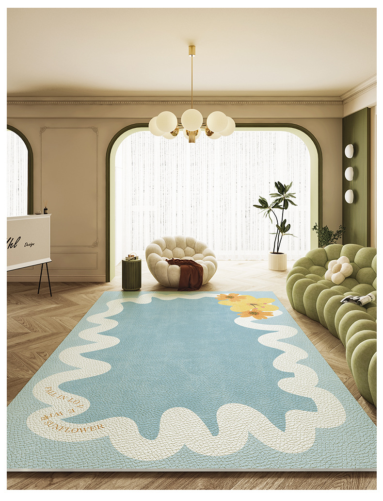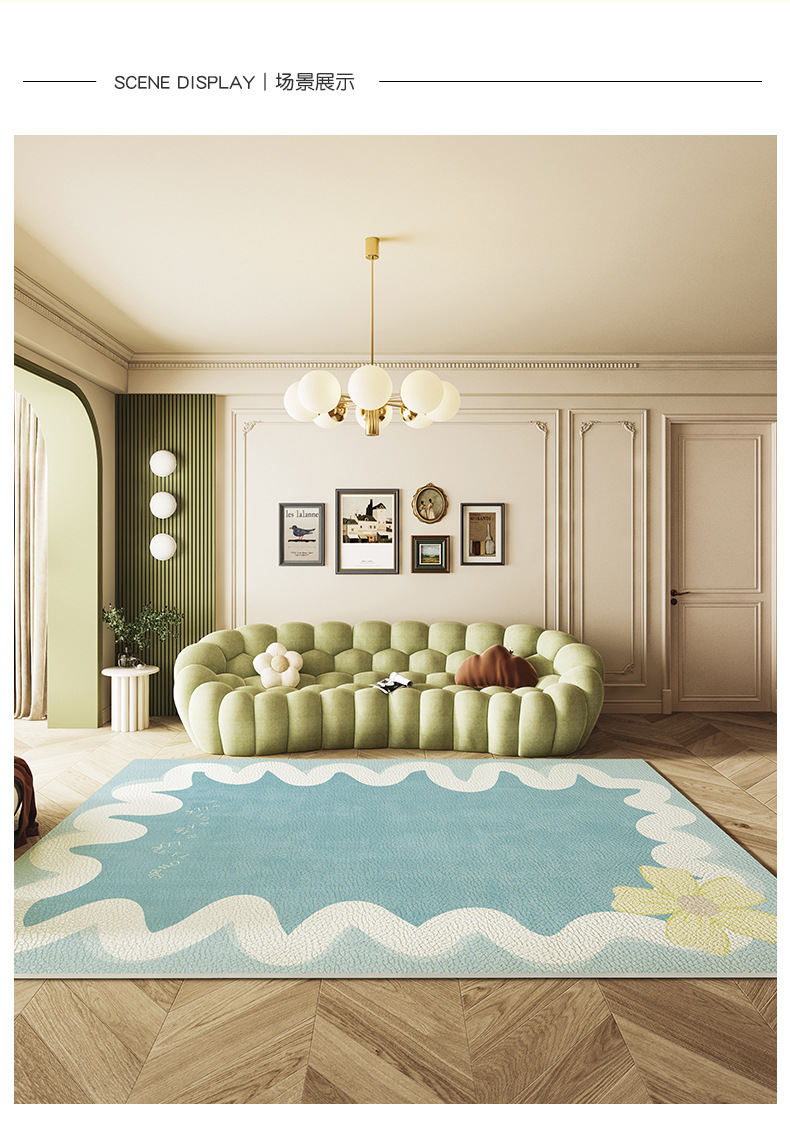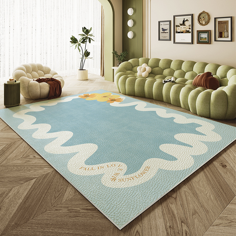 欧式简约小清新风客厅地毯全铺防滑耐磨免打理皮革地垫高级感脚垫