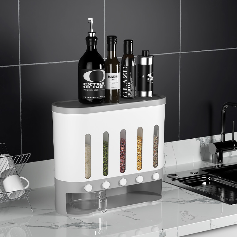 5格分格米桶壁挂式杂粮罐厨房加厚储物罐 五谷杂粮收纳分类米箱