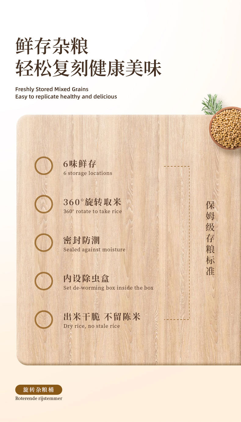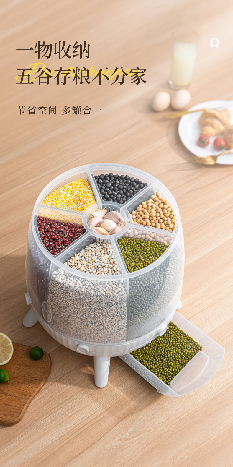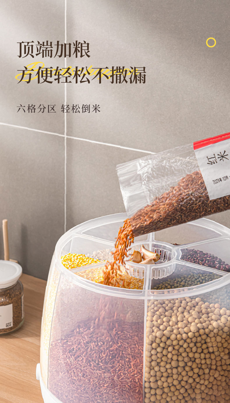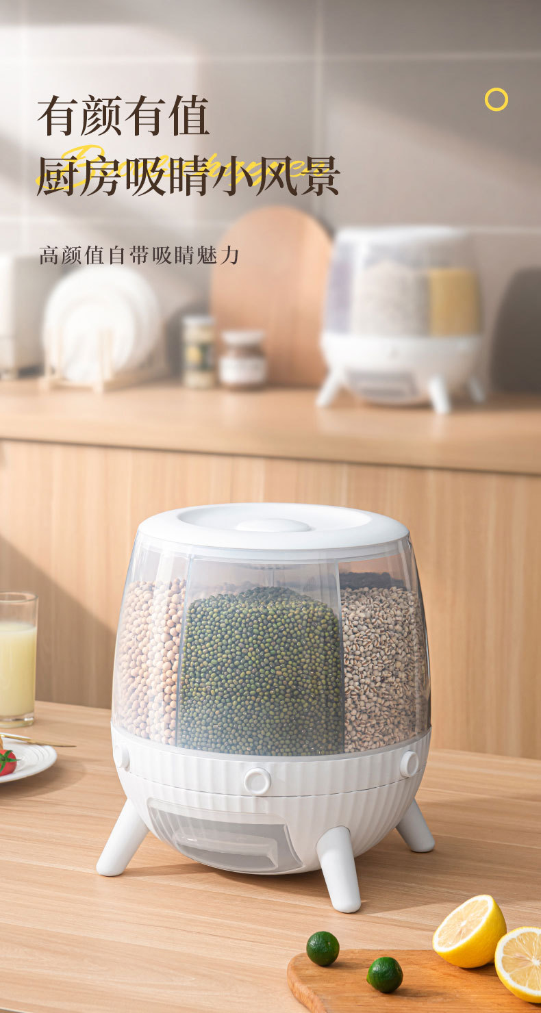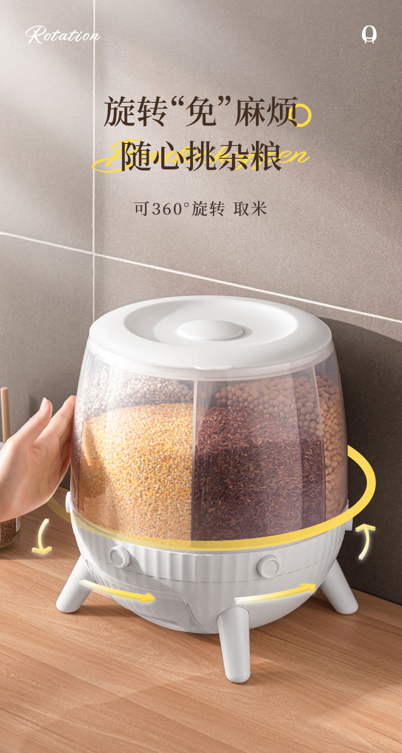 抖音爆款旋转米桶家用大容量旋转分格五谷杂粮桶防虫防潮密封米桶