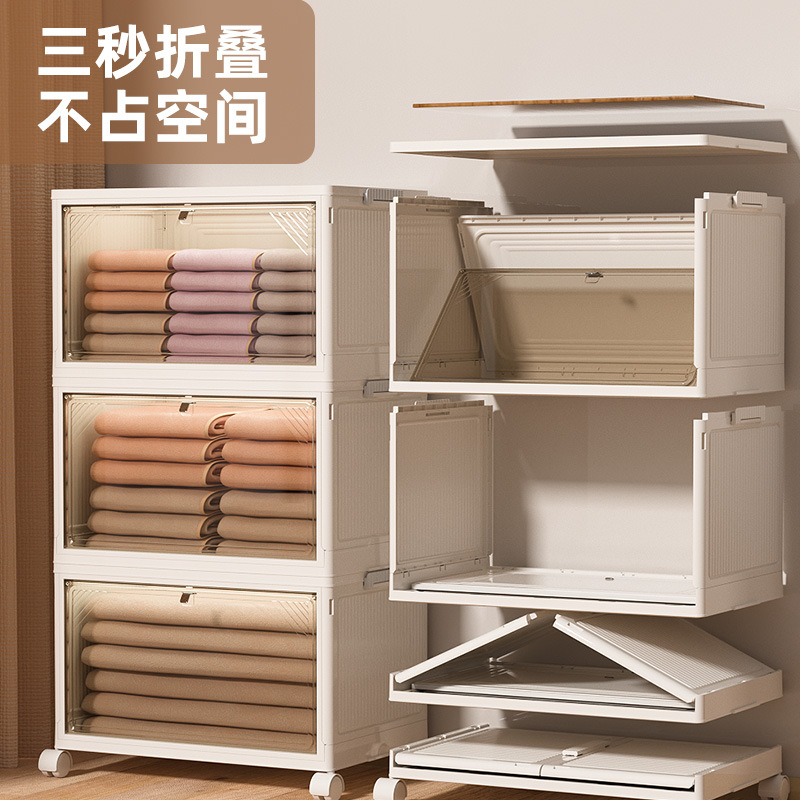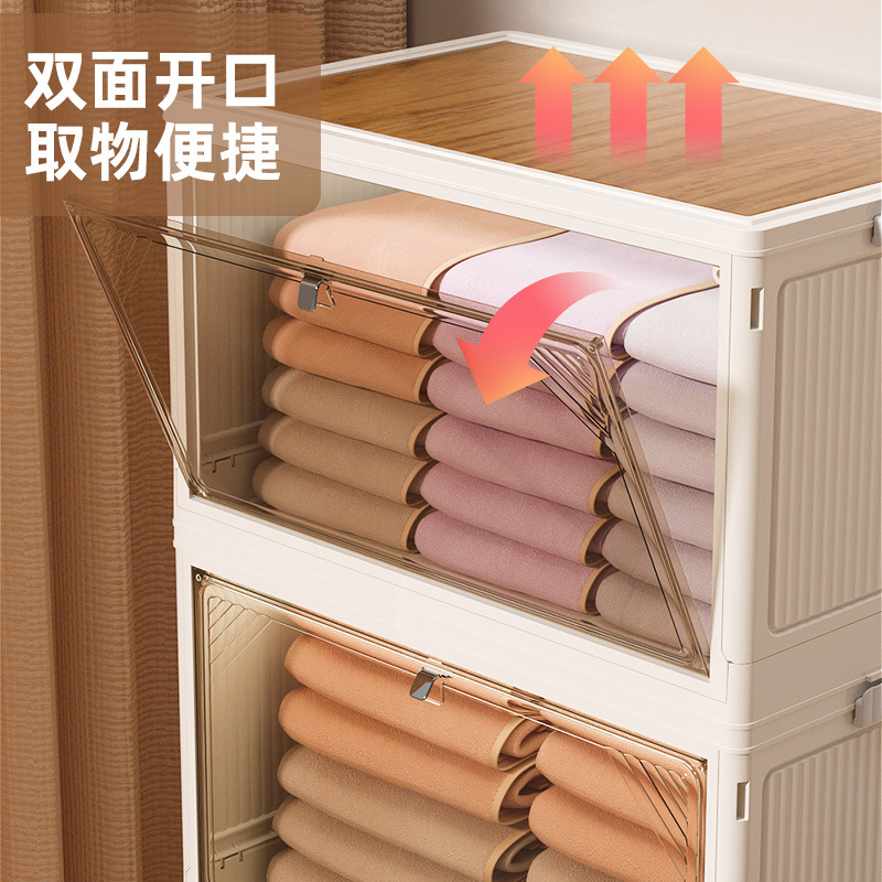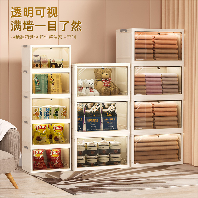 新款双开门折叠收纳柜 透明大容量玩具收纳整理柜多层折叠 收纳箱