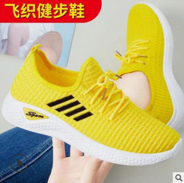 潮鞋新款飞织运动鞋春夏季软底休闲妈妈鞋网面低帮跑步学生鞋