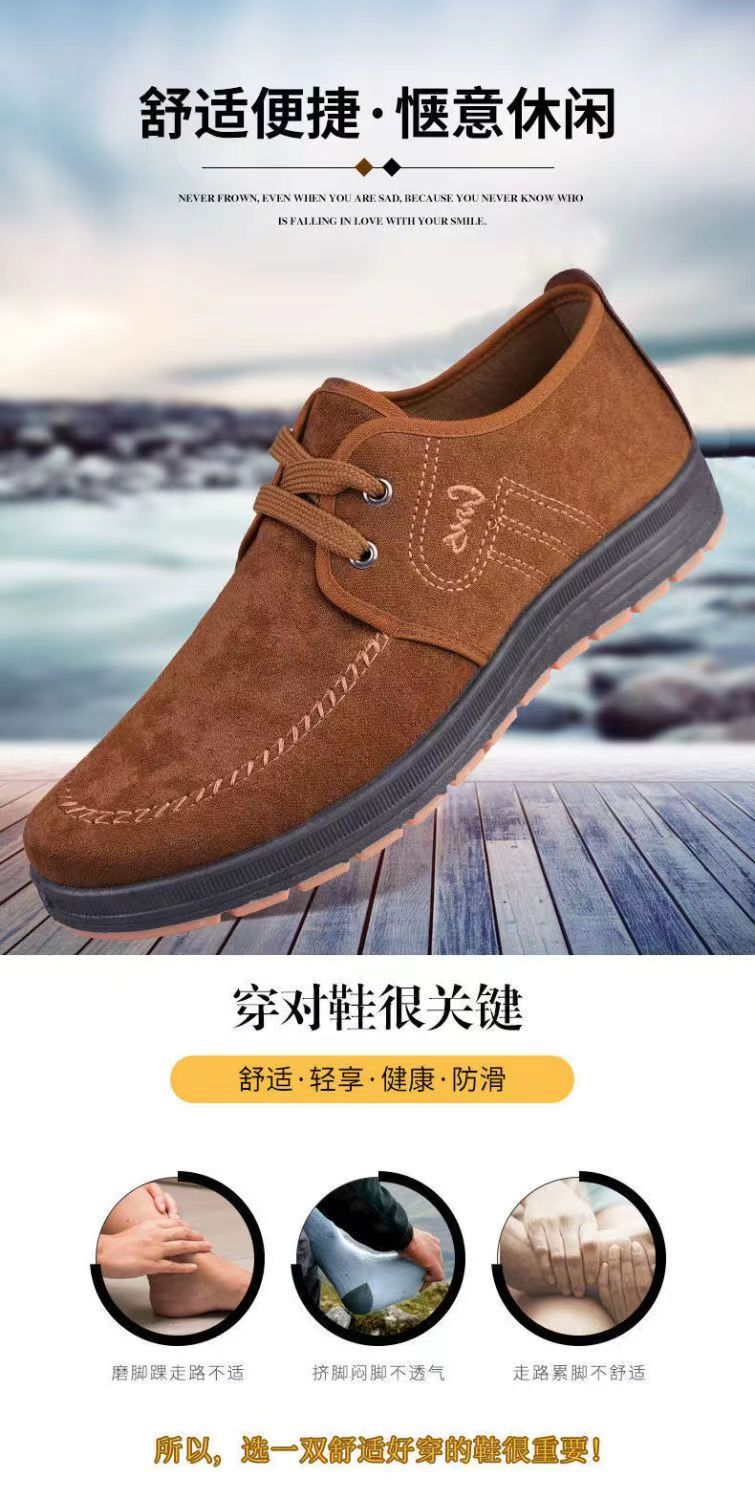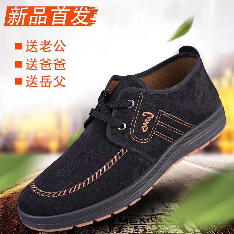 老北京布鞋男春季透气软底休闲牛筋底爸爸鞋中老年防滑一脚蹬网鞋