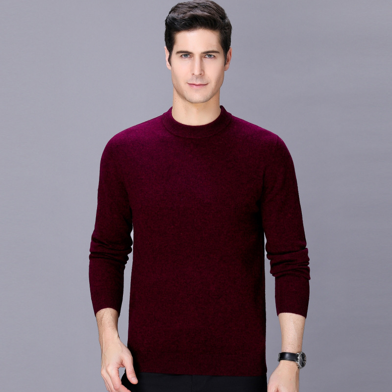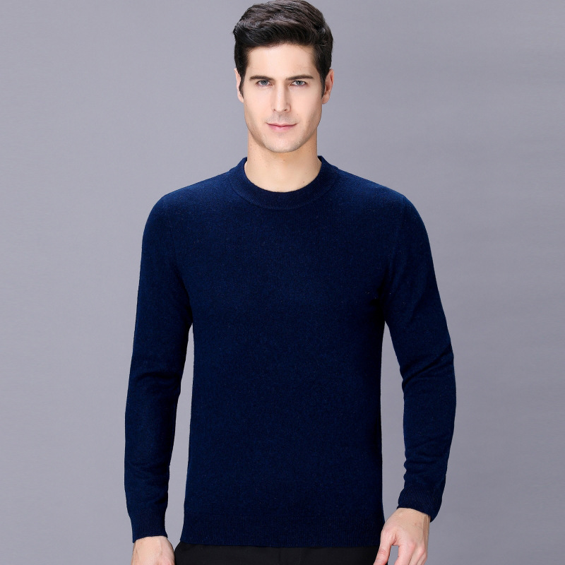 品牌冬季山羊绒男保暖加厚青中年男式打底衫休闲百搭男装圆领毛衣