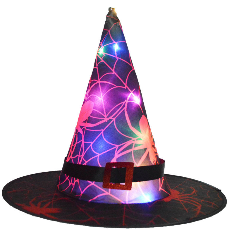 LED发光帽子头饰万圣节儿童成人派对舞会装扮发光巫婆帽巫师帽女