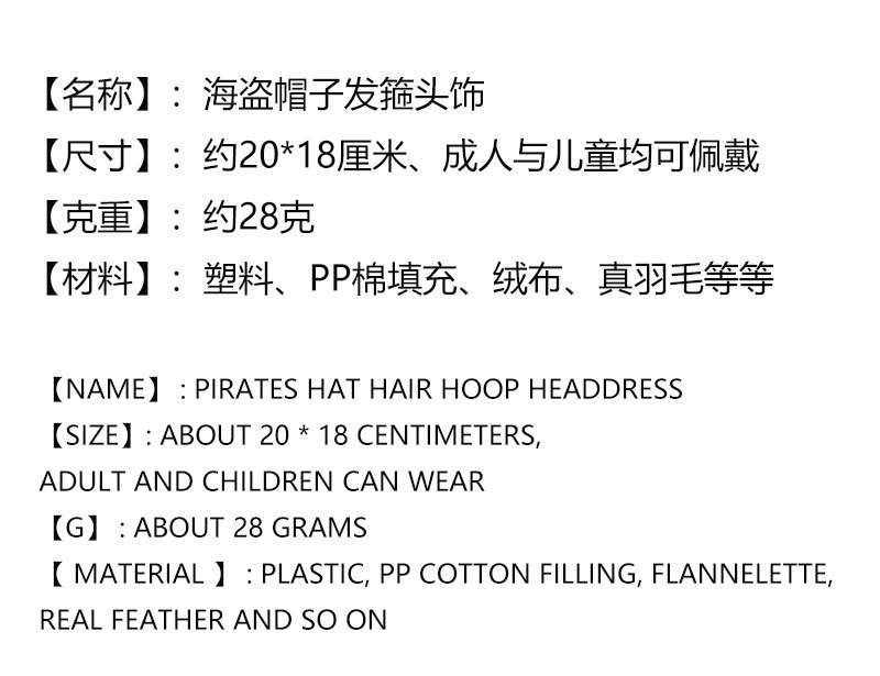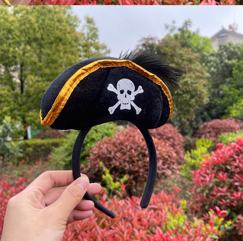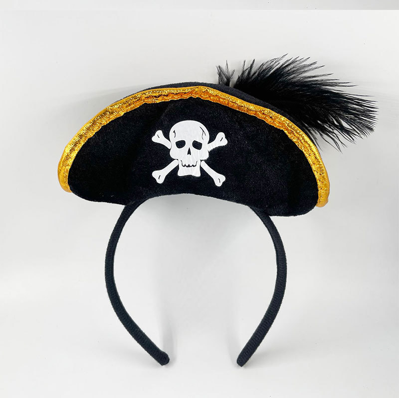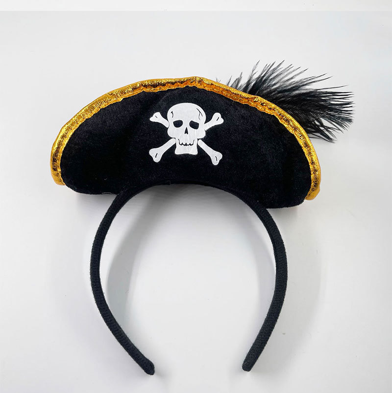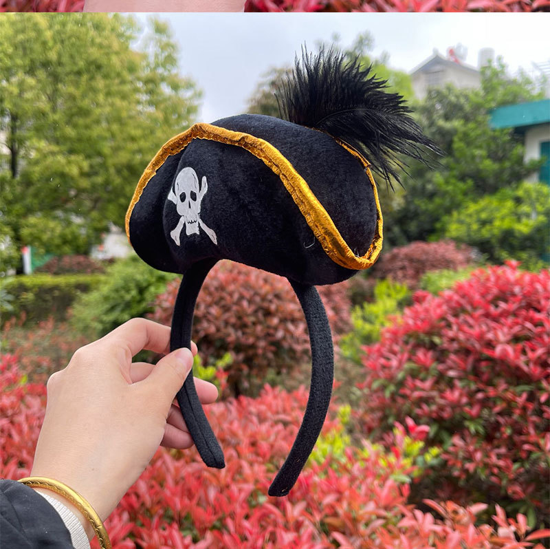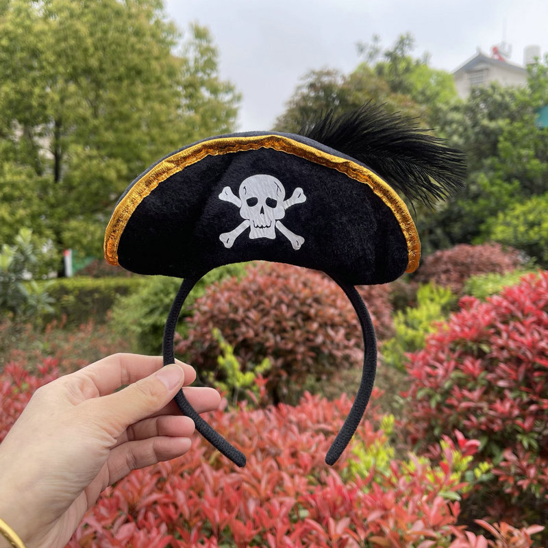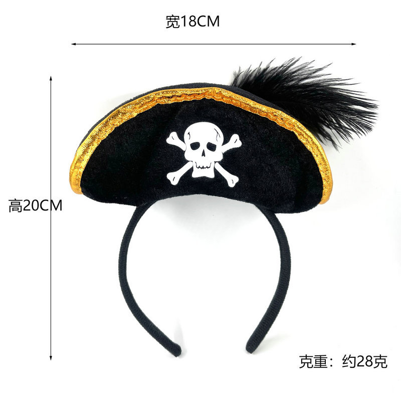 万圣节加勒比海盗帽头箍鬼节骷髅头发箍海盗船长头箍舞台表演头饰