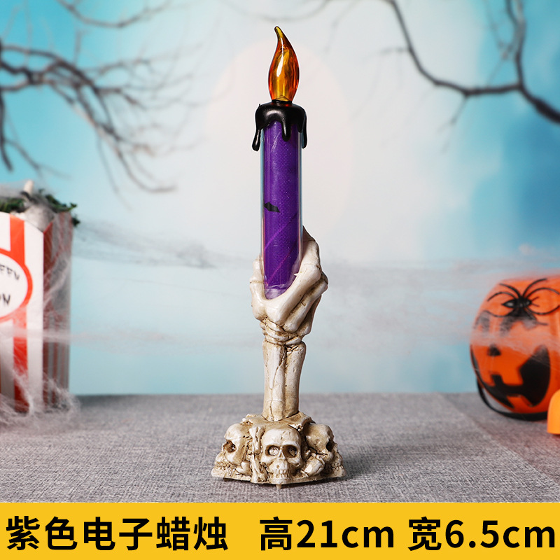 万圣节发光蜡烛灯 LED骷髅手 密室主题派对鬼屋 氛围派对道具摆件