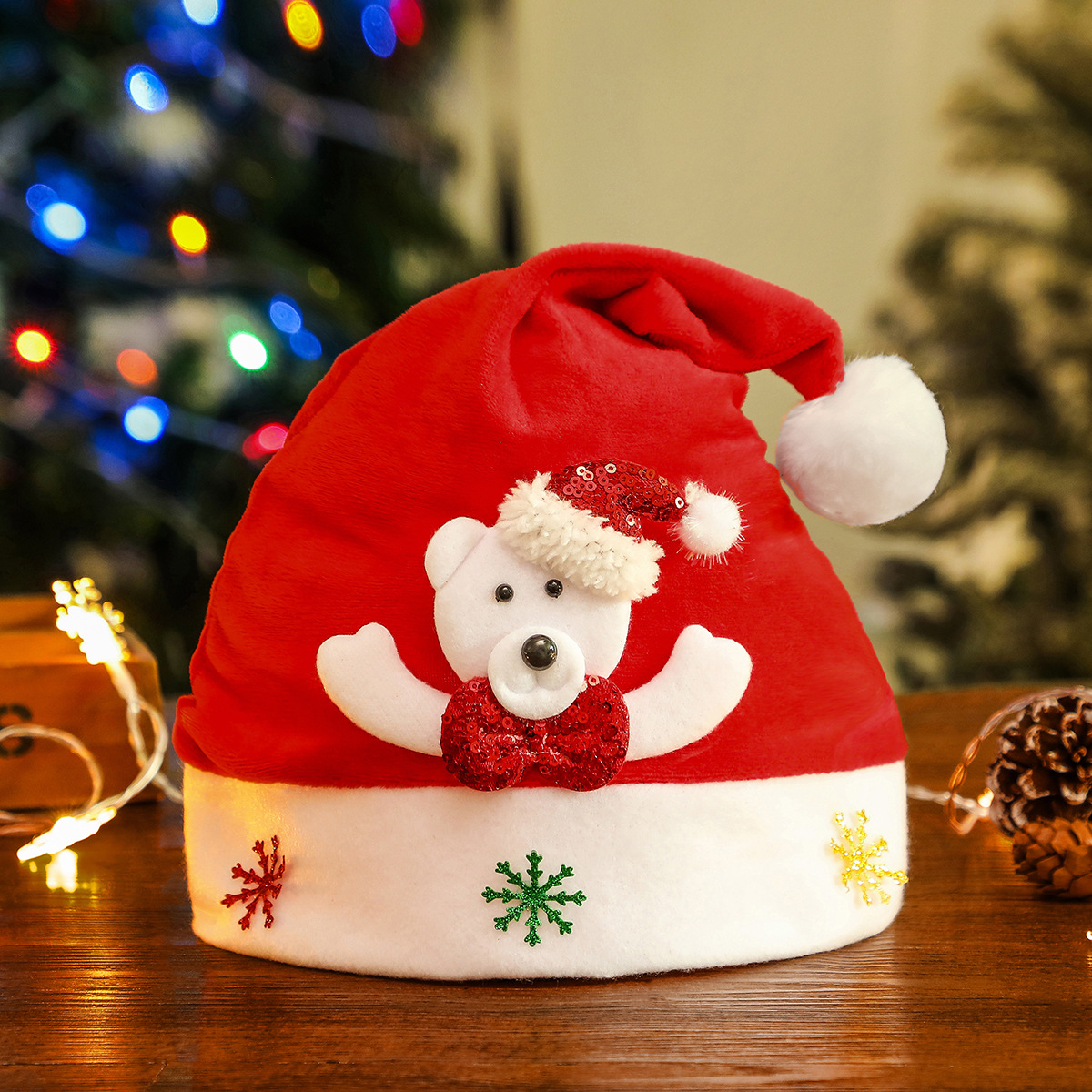 圣诞小手帽老人小鹿小熊雪人绒布可爱造型晚会派对装饰装扮帽