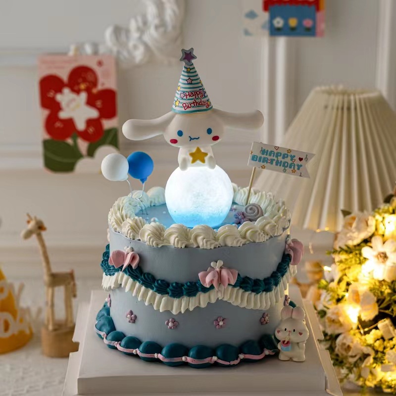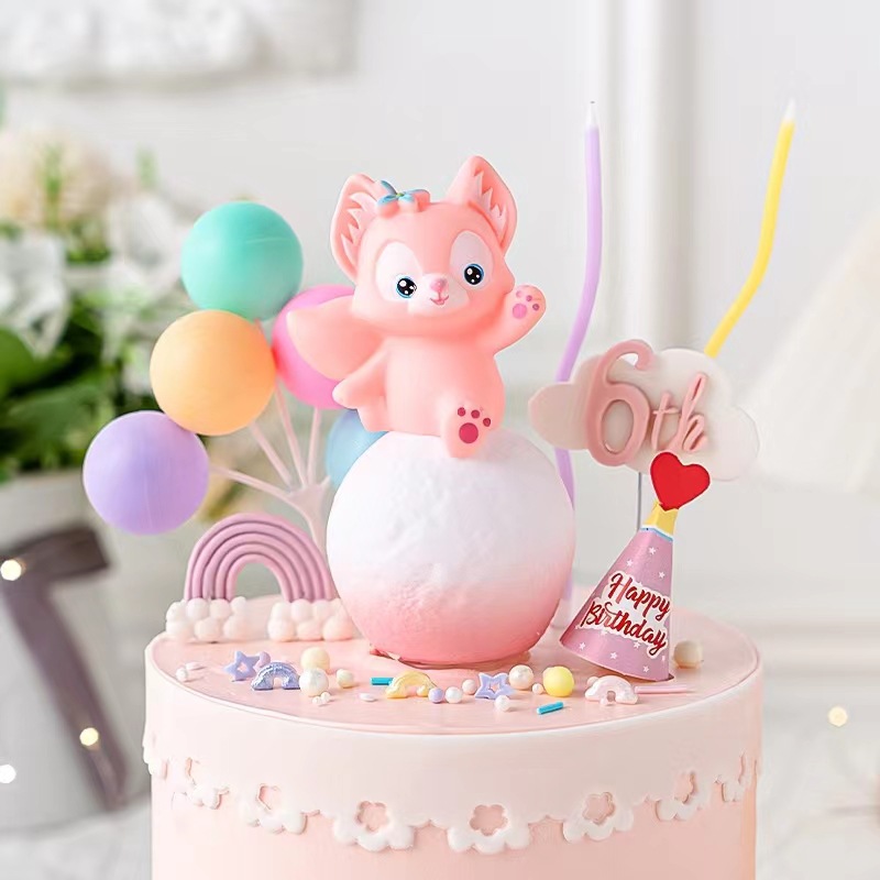 韩式ins蛋糕烘焙装饰可爱玉桂狗灯光球粉色狐狸星球月球灯摆件
