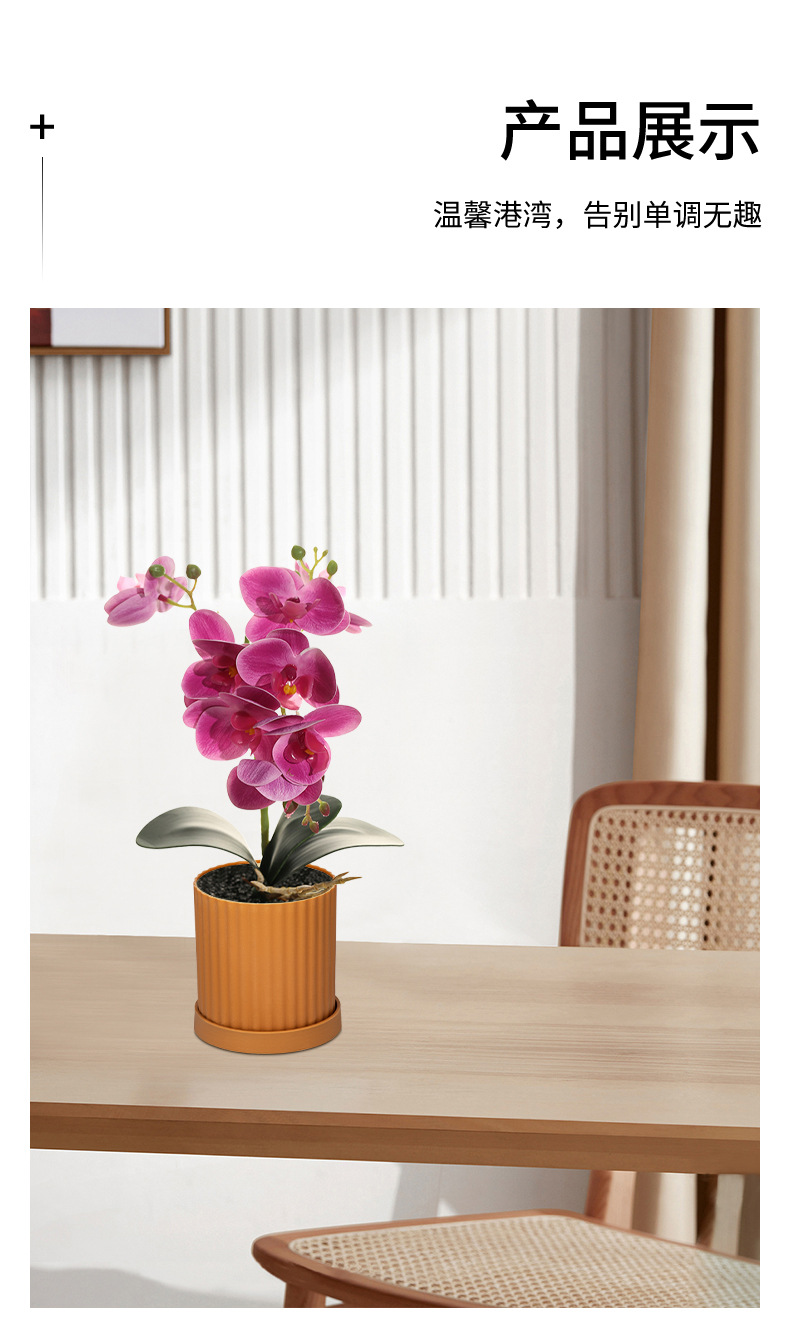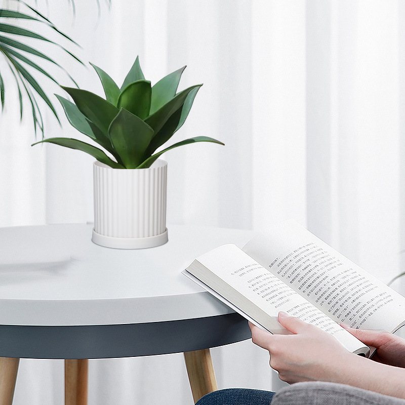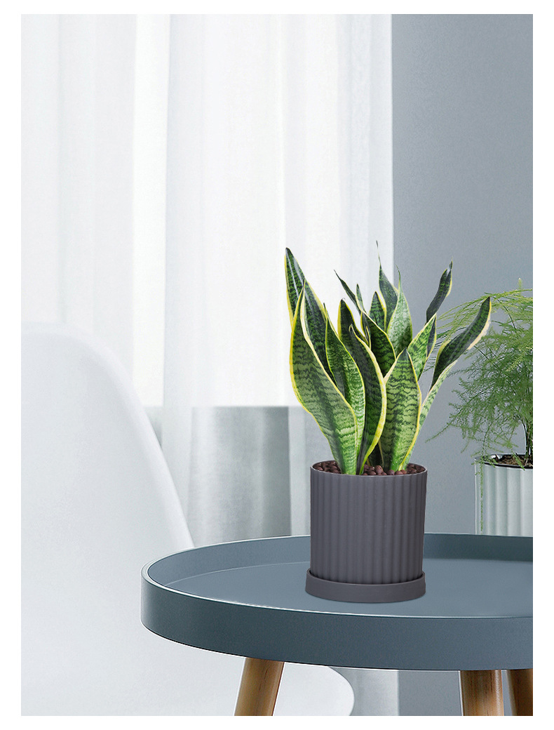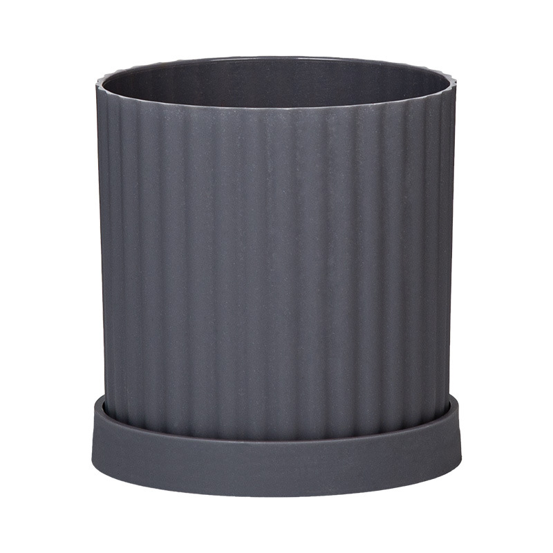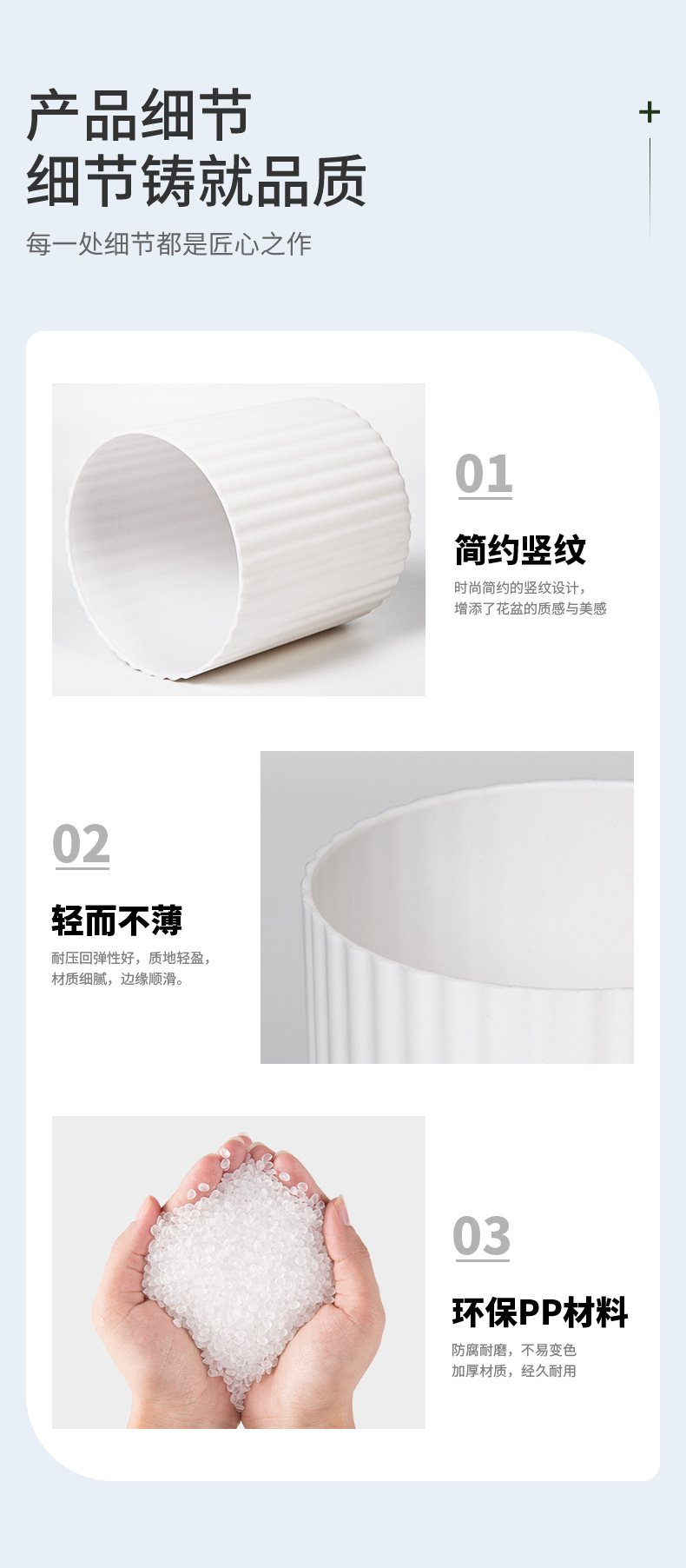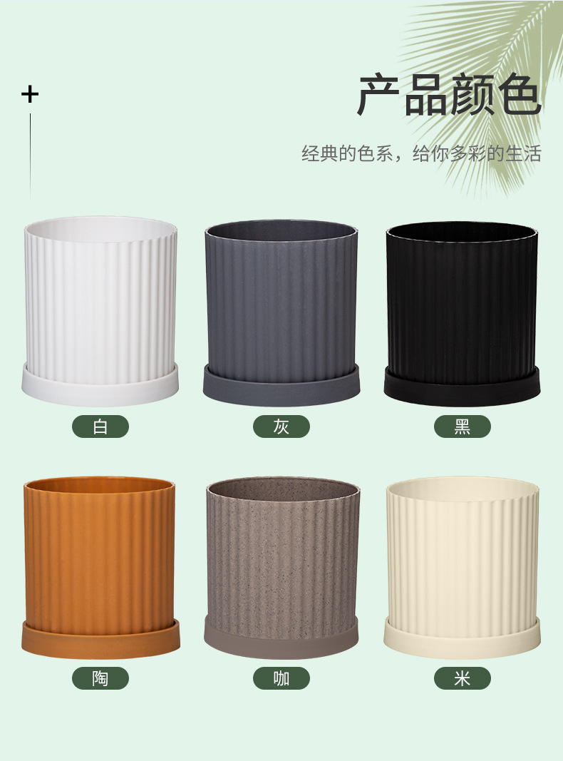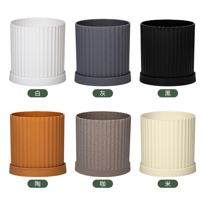 厂家批发圆形塑料花盆竖条纹配托盘多肉盆圆柱形假花装饰摆件PP盆
