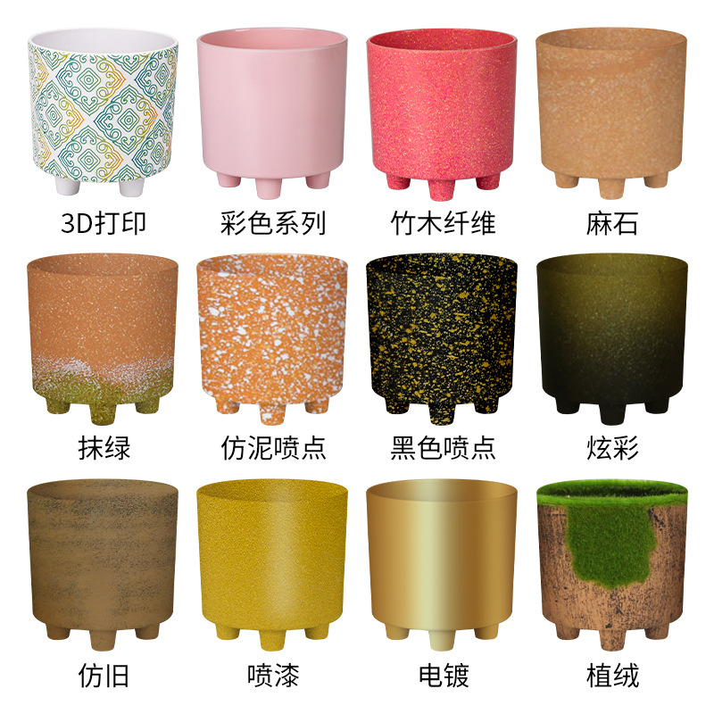 塑料花盆圆形密胺多肉盆四脚个性化图案印LOGO厂家批发桌面种植盆