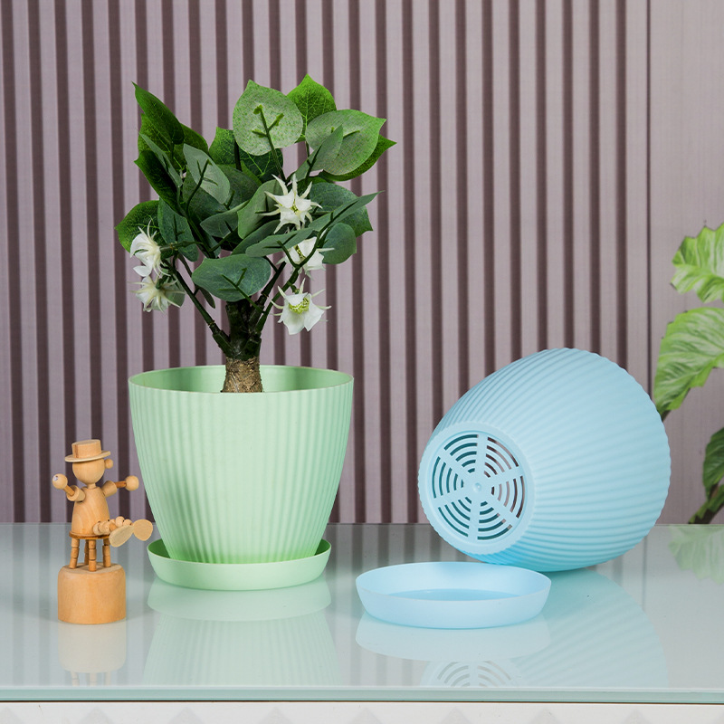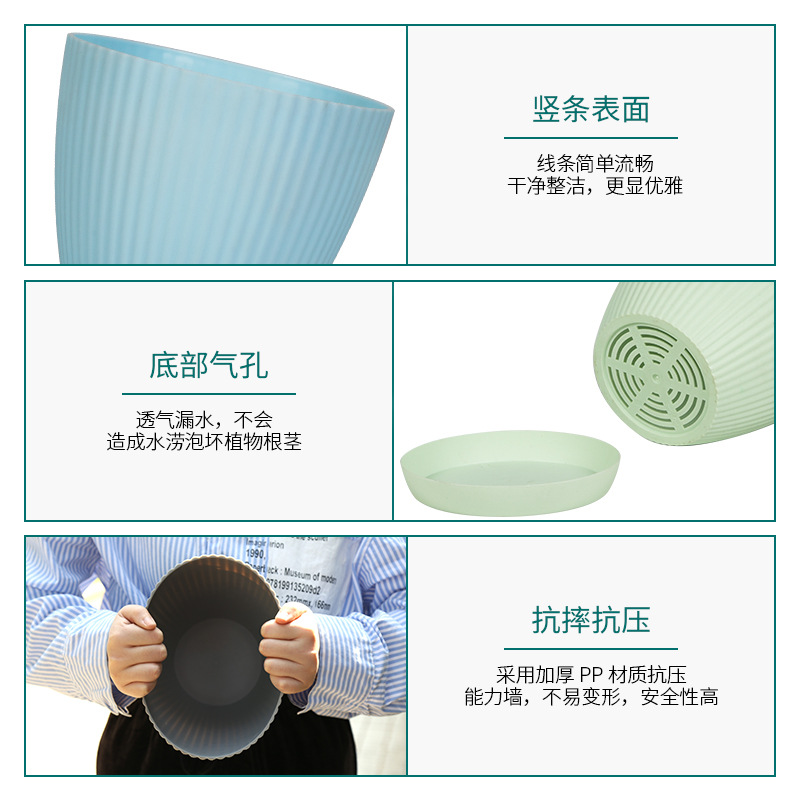 塑料花盆大口径桌面种植盆土陶竖条纹多肉盆绿植仿陶瓷盆厂家批发