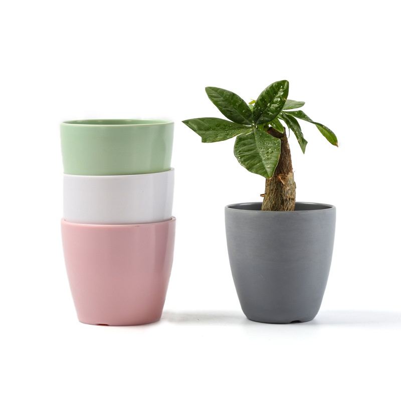 厂家直销圆形塑料花盆马卡龙色仿陶瓷密胺花盆光面假花多肉装饰盆