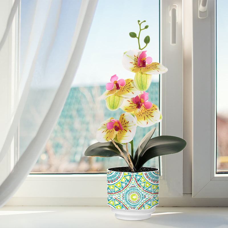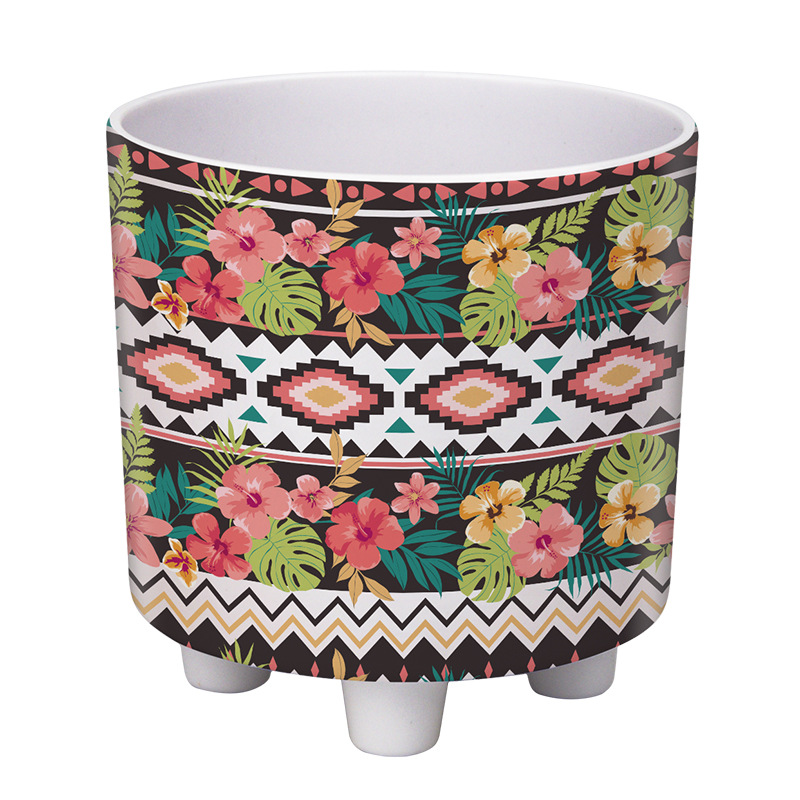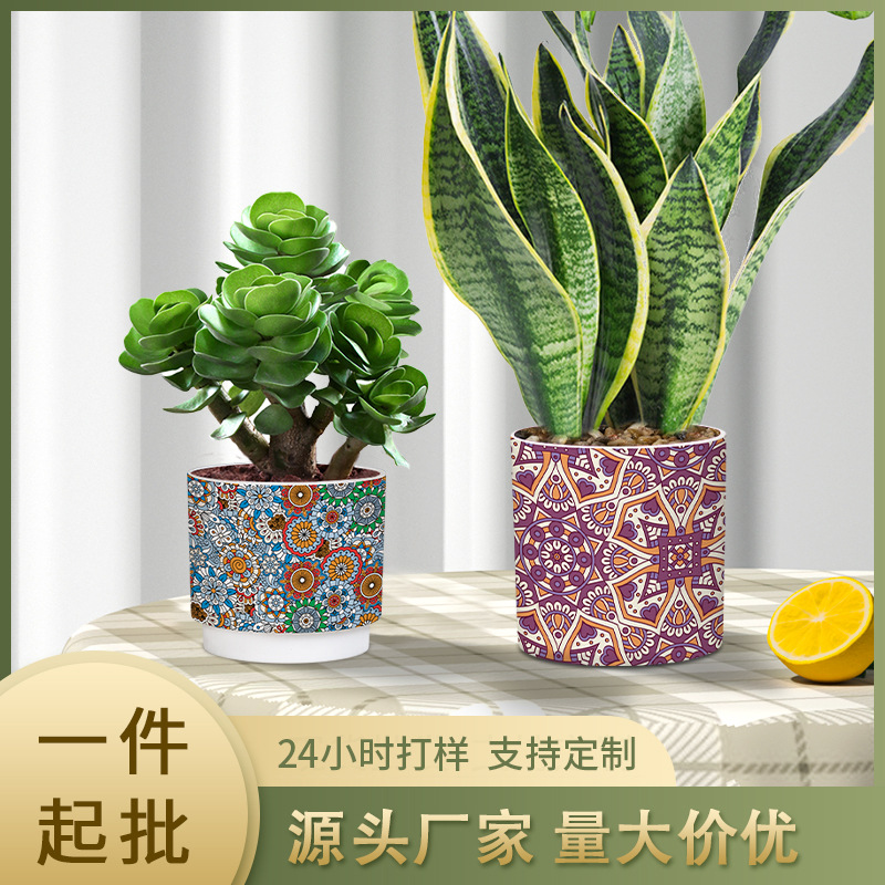 塑料花盆个性化定制LOGO图案民族风装饰花盆仿真花插花可搭配泡沫