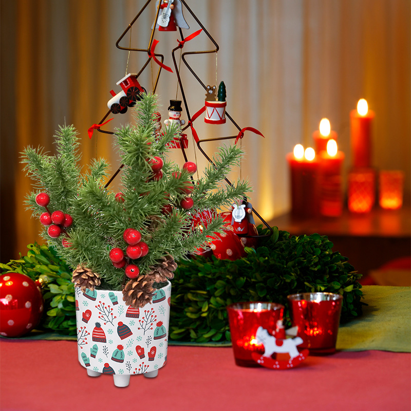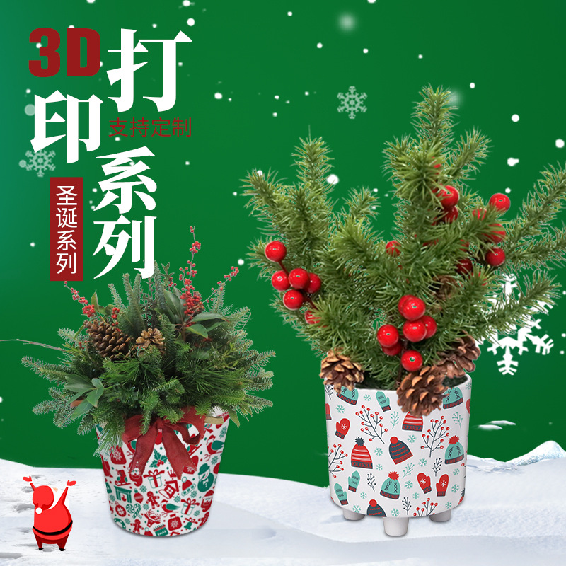 源头厂家圣诞节装饰花盆3D打印定制图案logo仿真花假花盆塑料花盆
