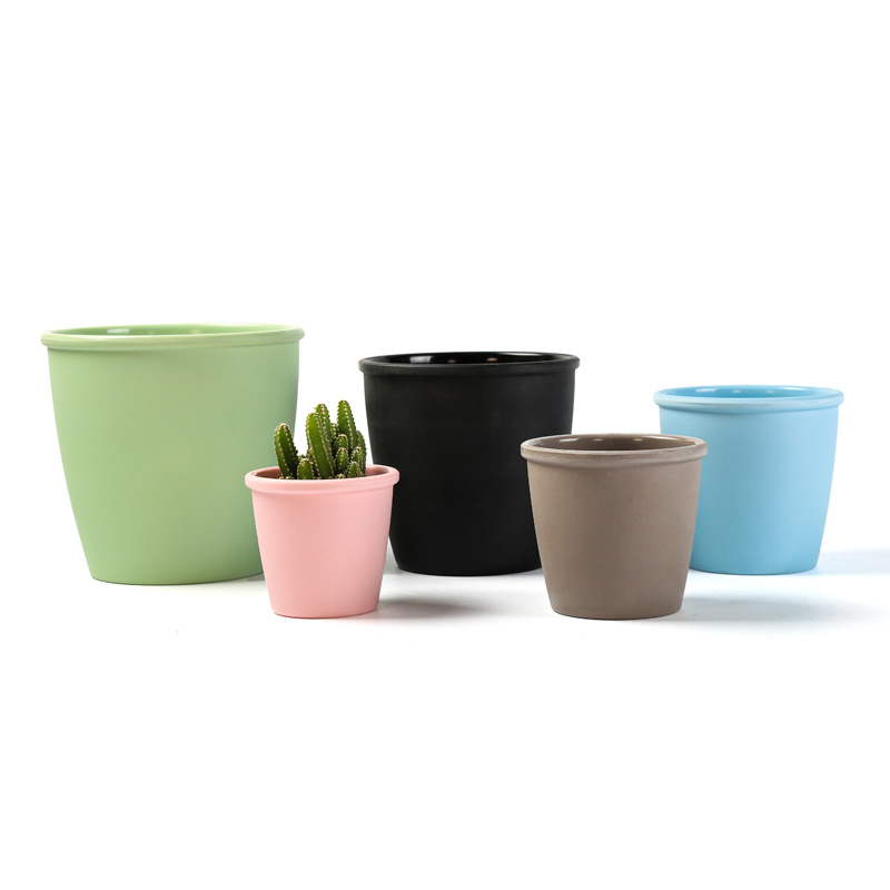 马卡龙色仿陶瓷塑料花盆桌面种植多肉盆圆形磨砂加厚密胺园艺定制
