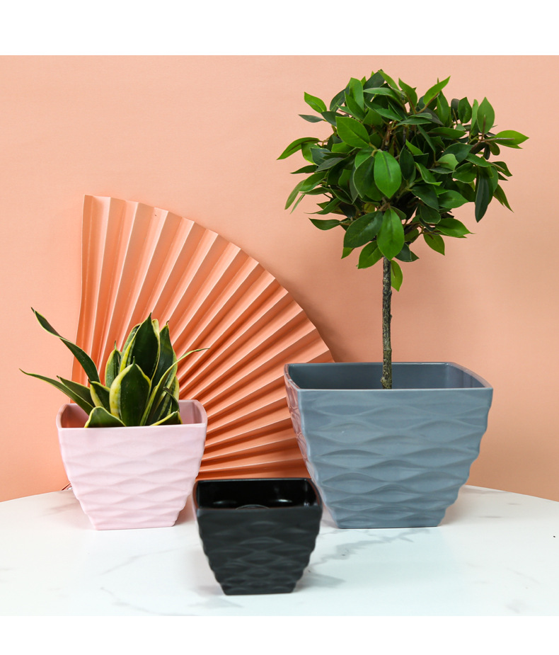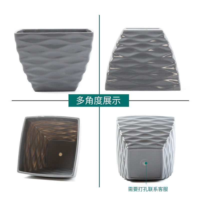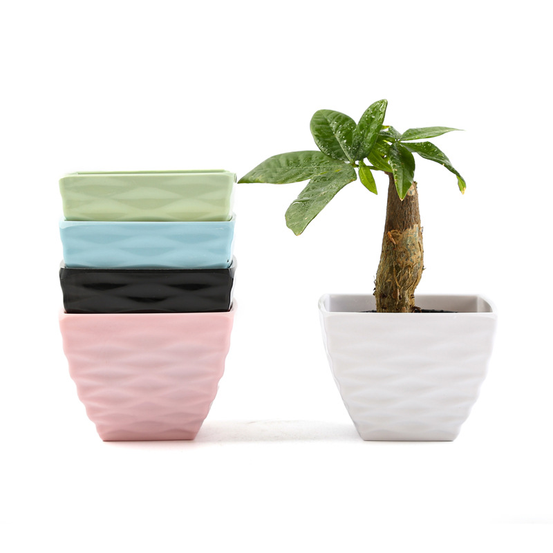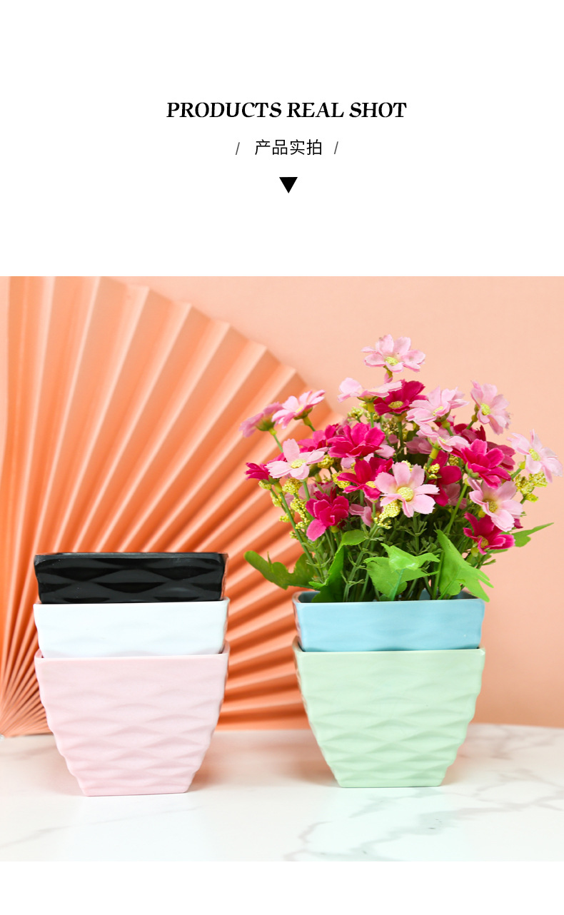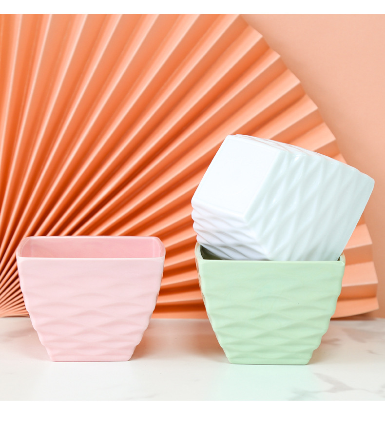 厂家直销凹面四方塑料花盆仿陶瓷多肉盆马卡龙色密胺花盆装饰盆