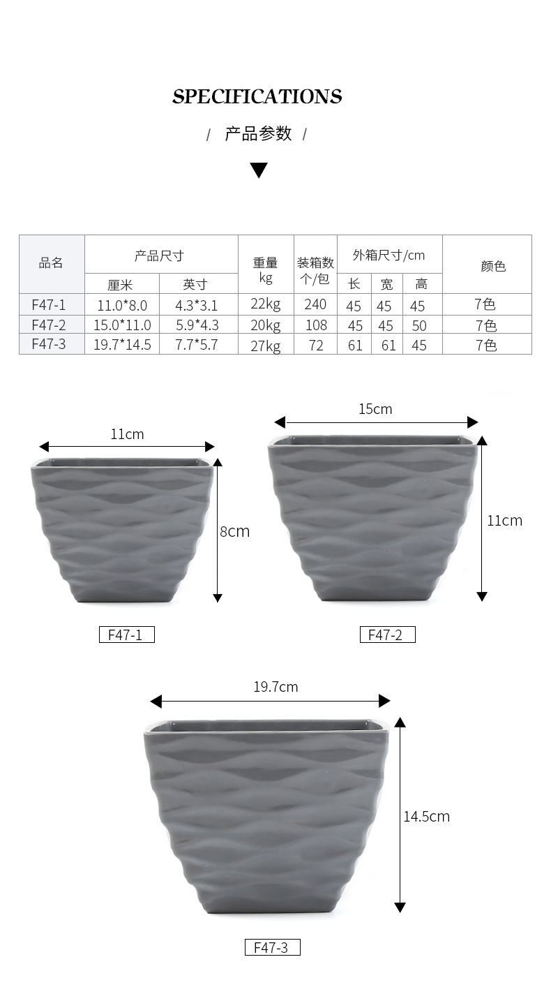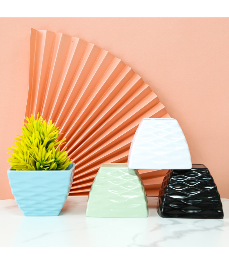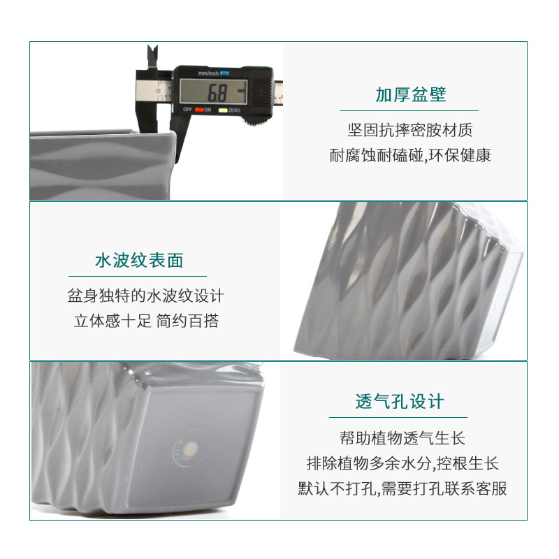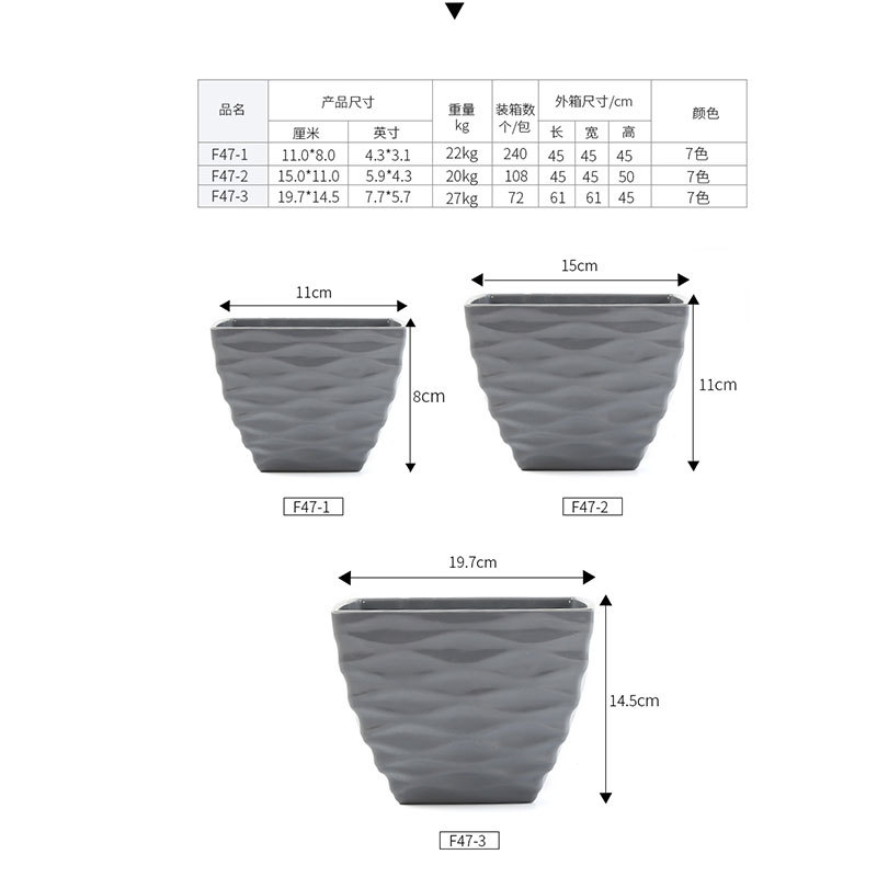 厂家直销凹面四方塑料花盆仿陶瓷多肉盆马卡龙色密胺花盆装饰盆