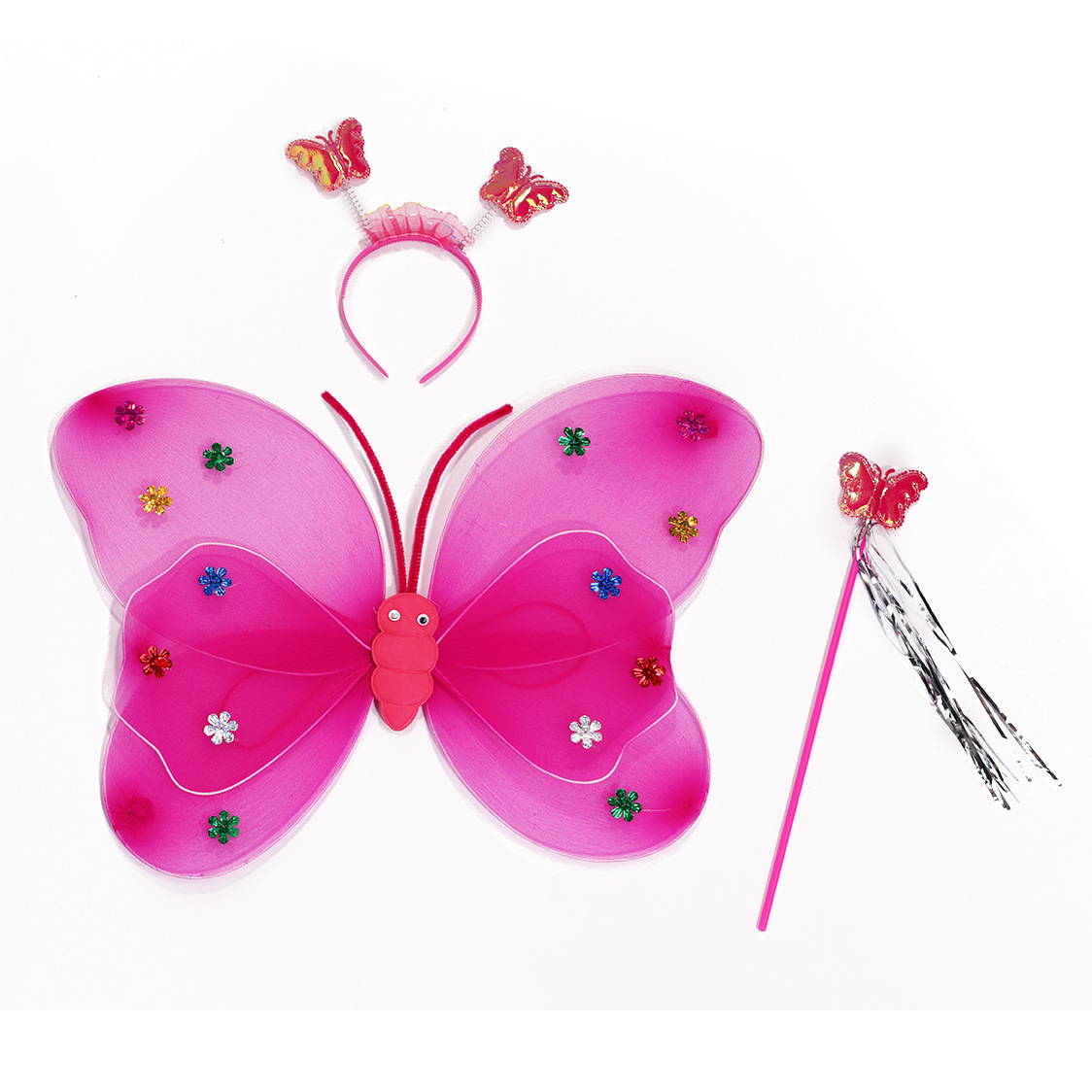 发光蝴蝶翅膀四件套儿童 演出服装天使翅膀万圣节舞台演出装扮