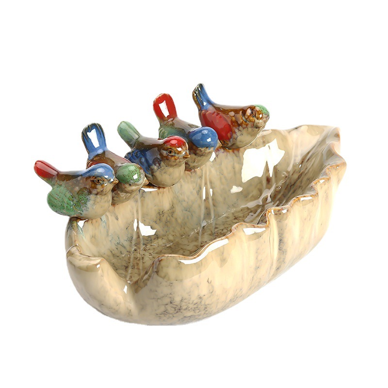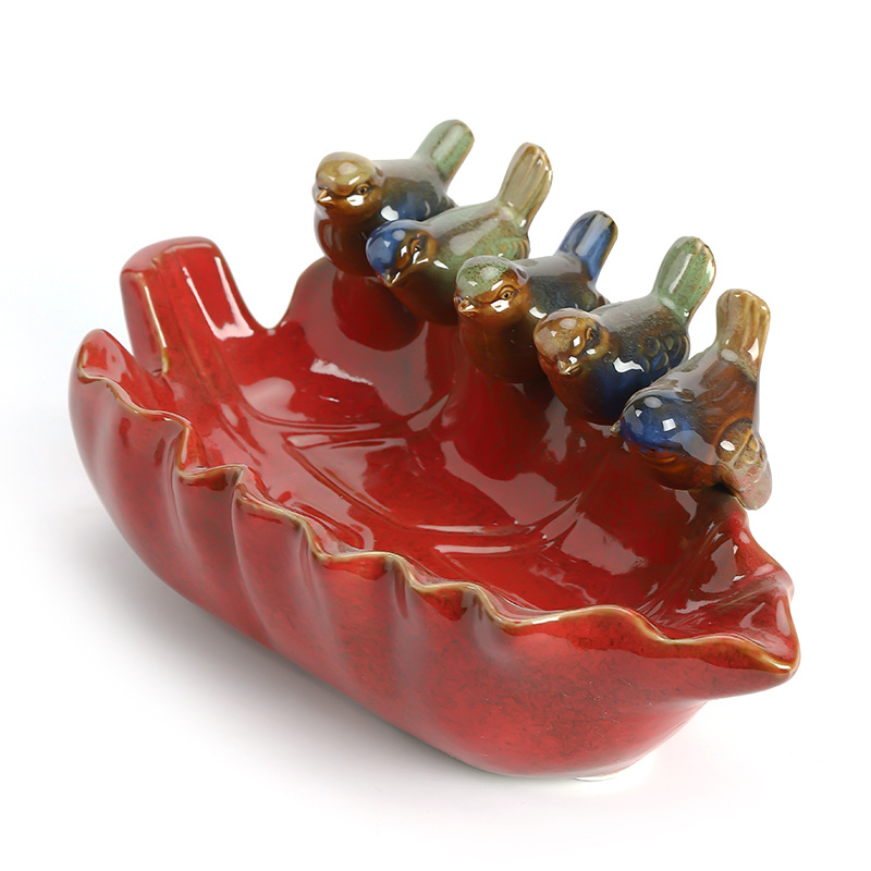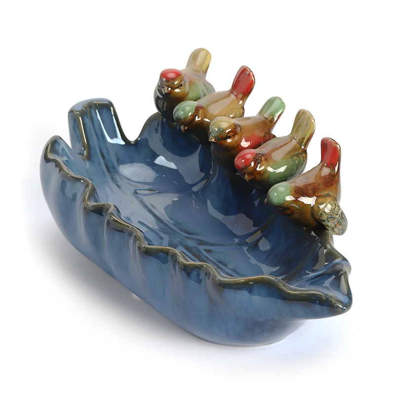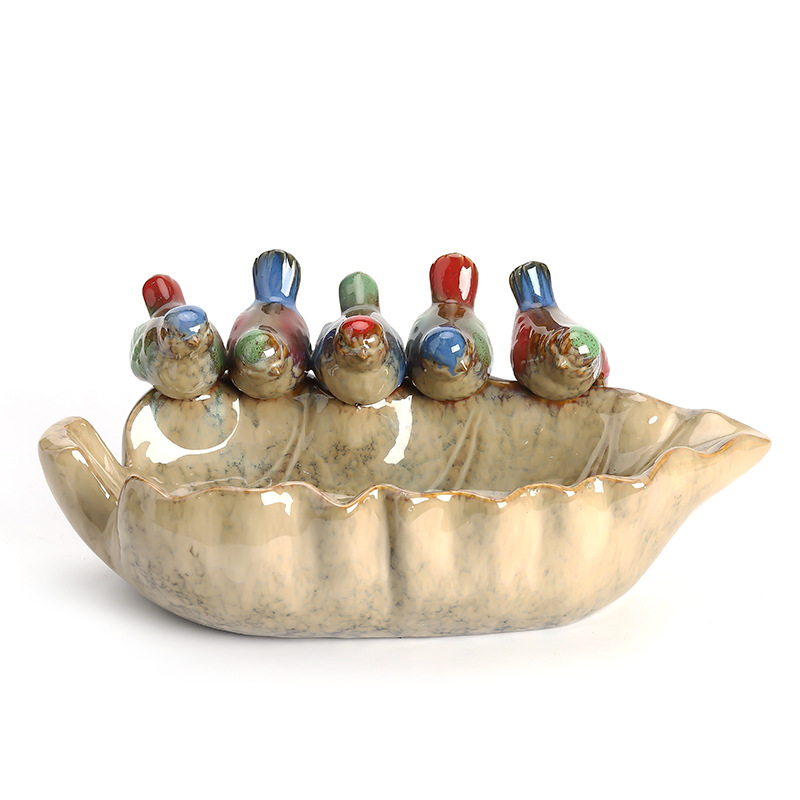 厂家直供陶瓷工艺品 窑变釉水果盘摆件 小鸟 动物水果盘家居摆设