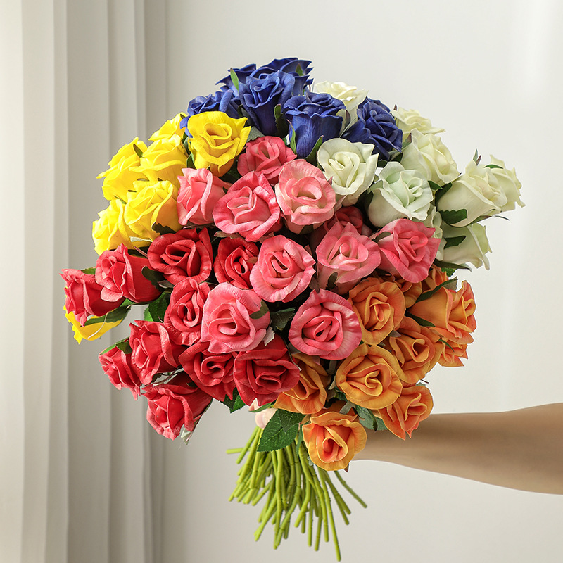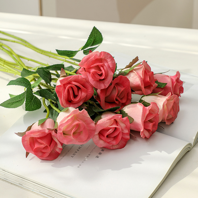 仿真花单支手感玫瑰节日礼物家居摆件插花办公装饰拍摄布景道具