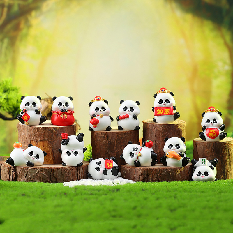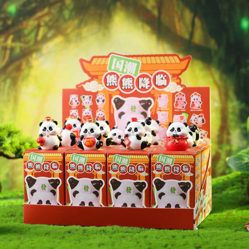 创意熊熊降临大萌粒卡通熊猫盲盒手办批发可爱节日吉祥物公仔摆件