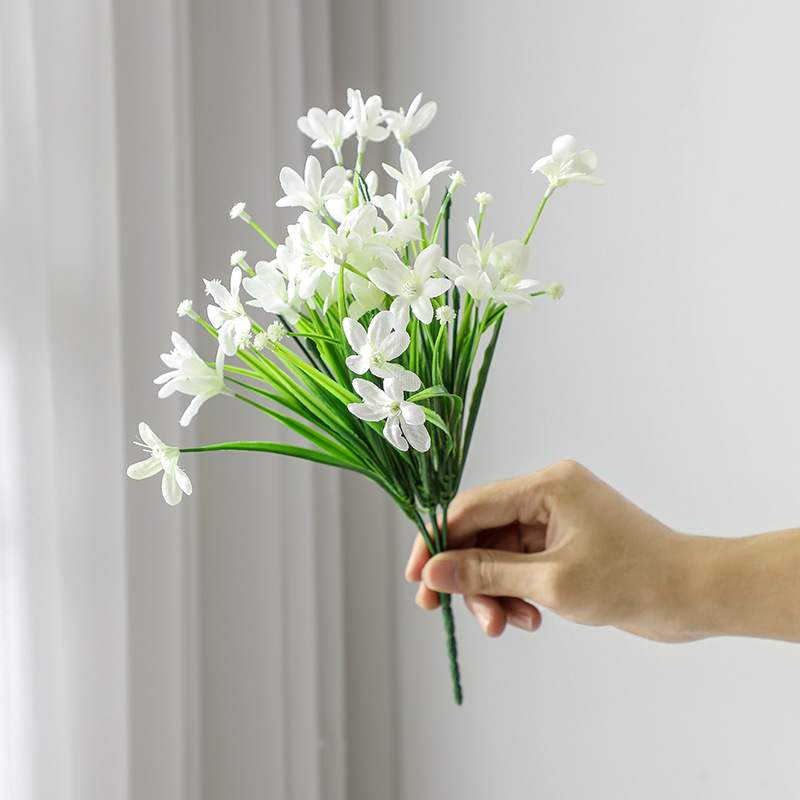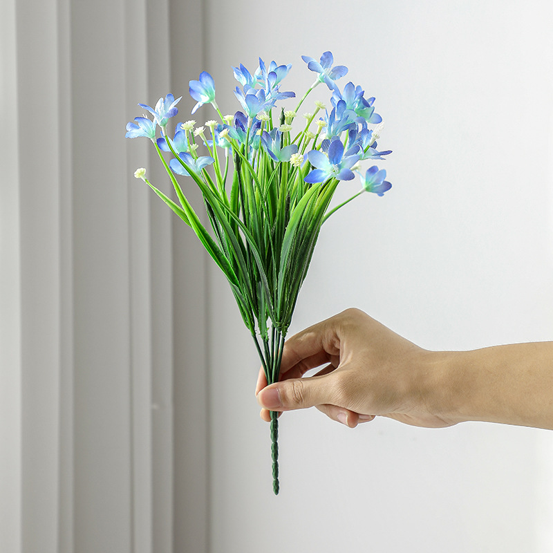 仿真花7叉春草兰花多色北田园清新装饰花客厅桌面小摆件家居室内