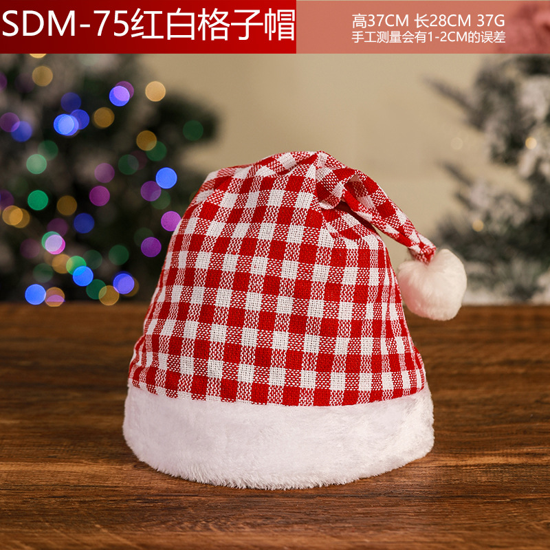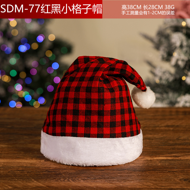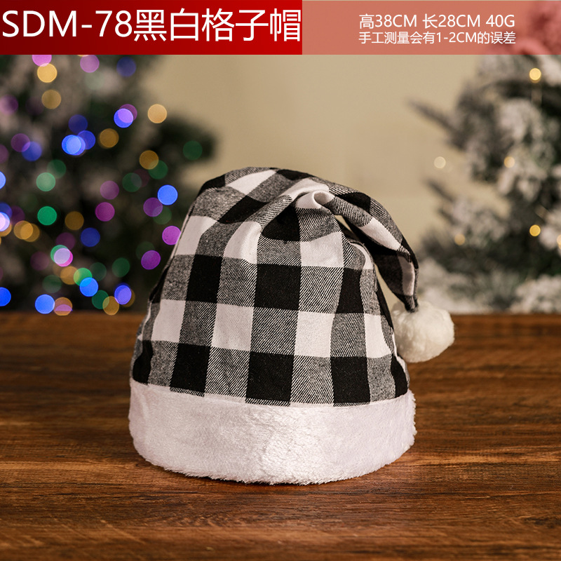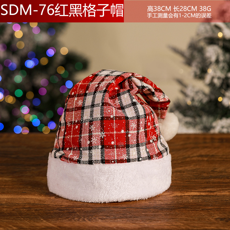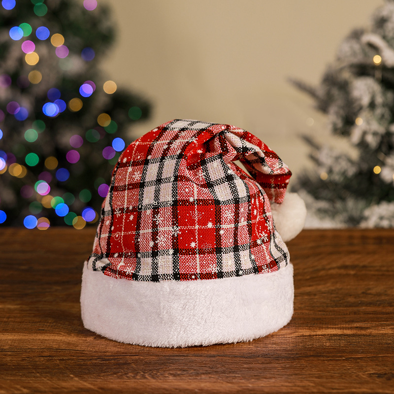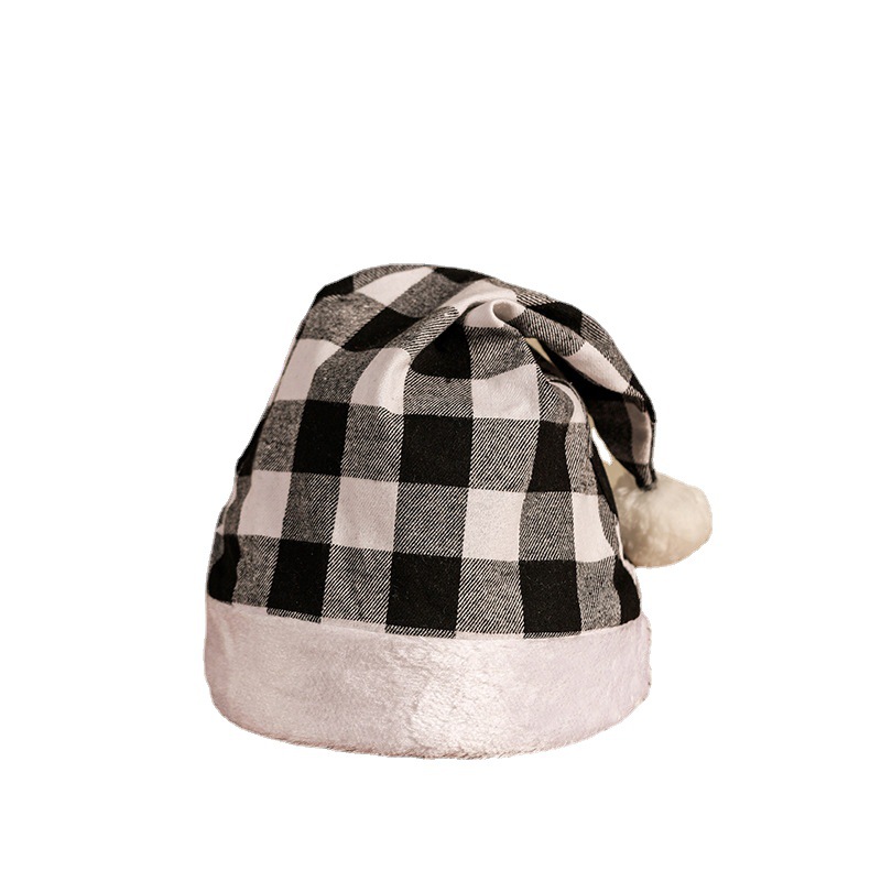 圣诞节格子帽派对节日装饰帽子成人红白红黑格子毛绒边格子圣诞帽