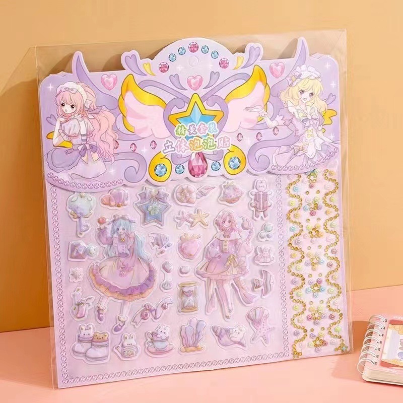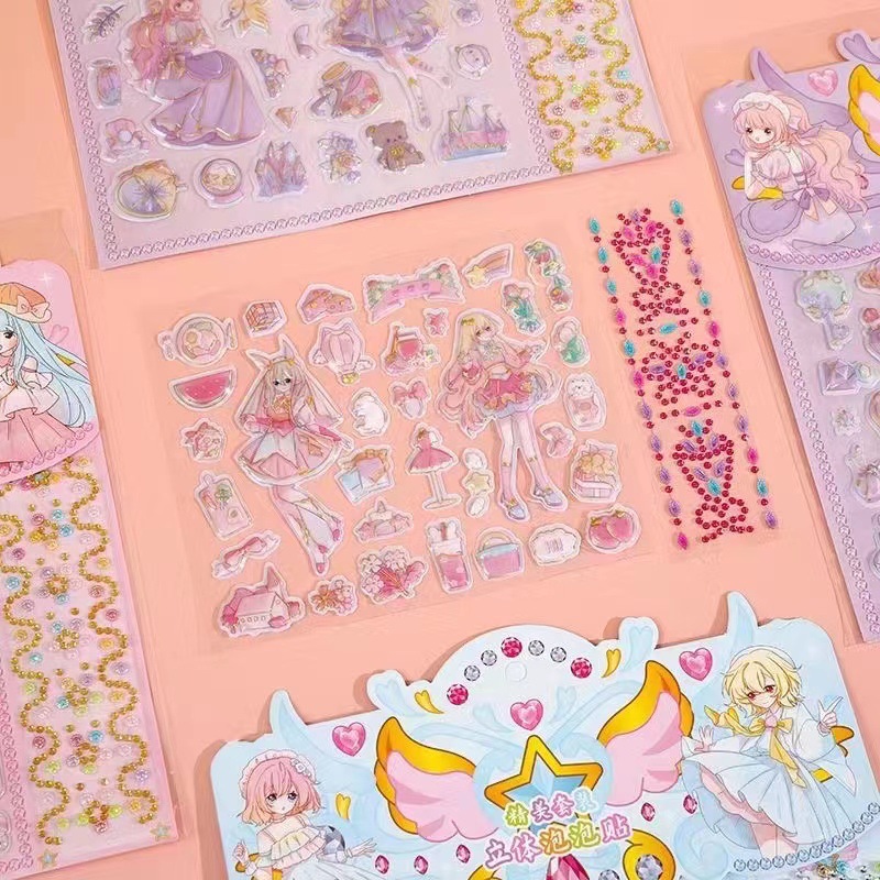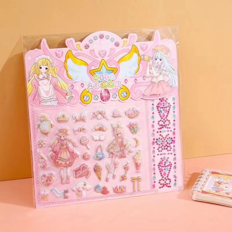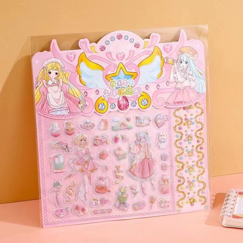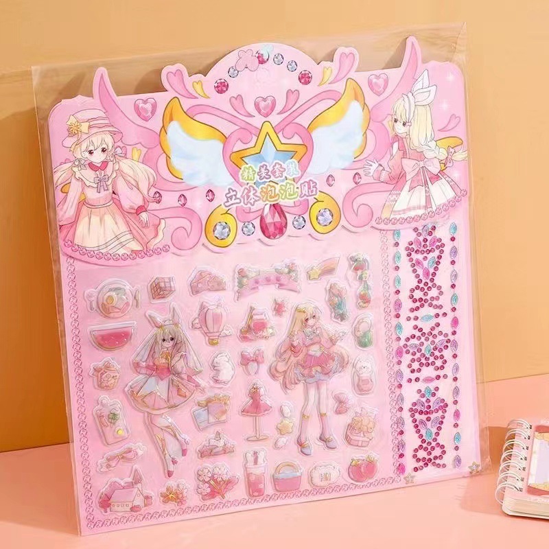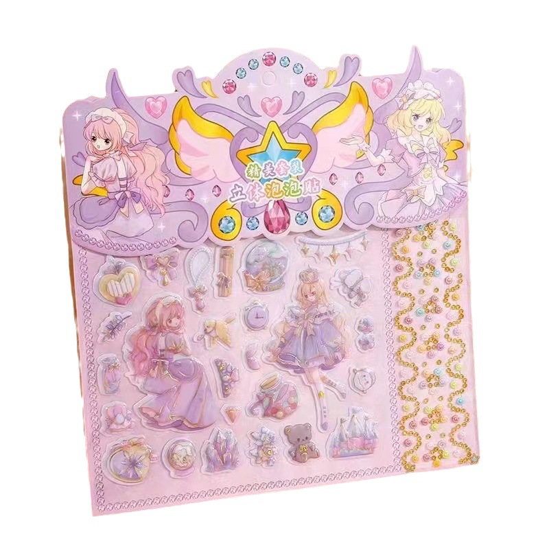 儿童卡通立体泡泡贴 二合一亚克力钻石贴画 公主换装贴纸奖励贴纸