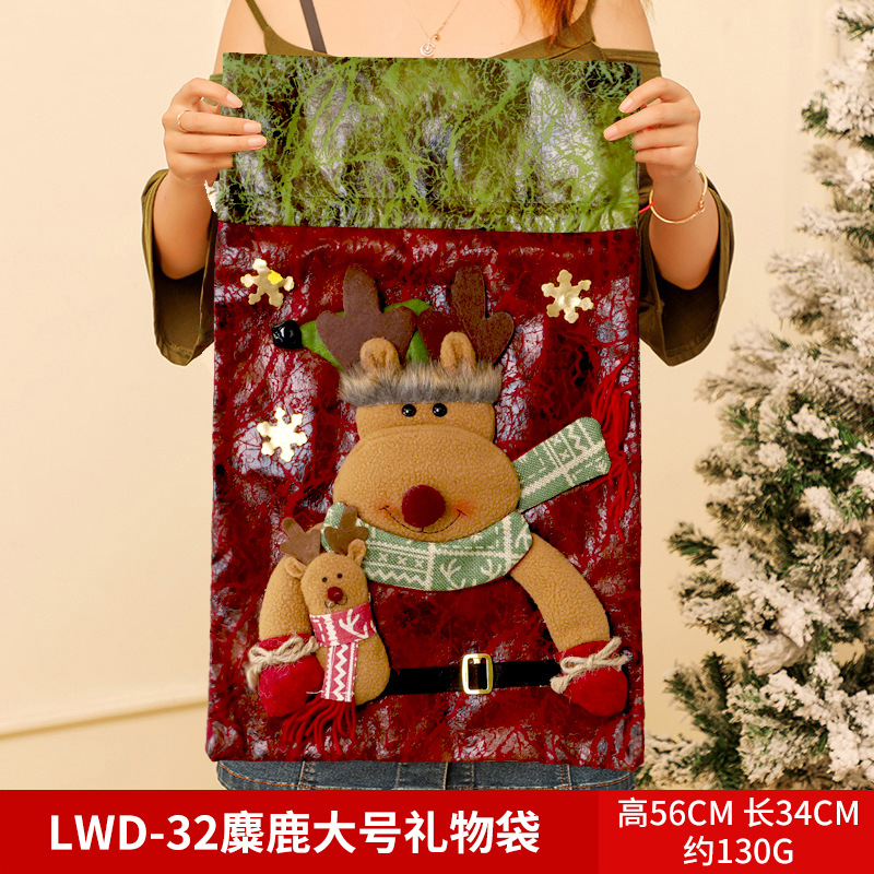 圣诞大号礼物袋抽绳束口老人雪人麋鹿手提袋圣诞树礼品袋圣诞背包