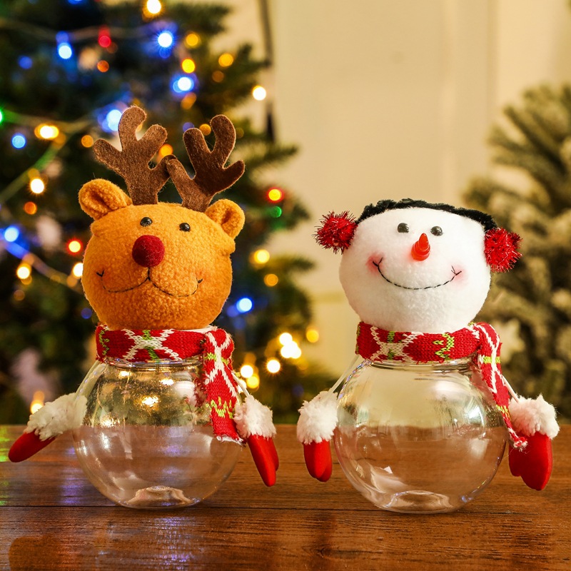 圣诞糖果罐苹果筒雪人老人麋鹿造型装饰摆件圣诞节讨糖喜庆道具