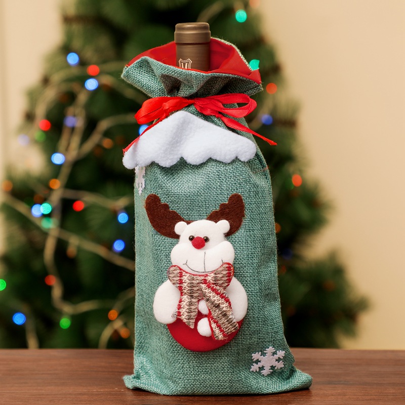圣诞系列红酒酒套卡通可爱造型老人雪人麋鹿小熊图案节日氛围道具