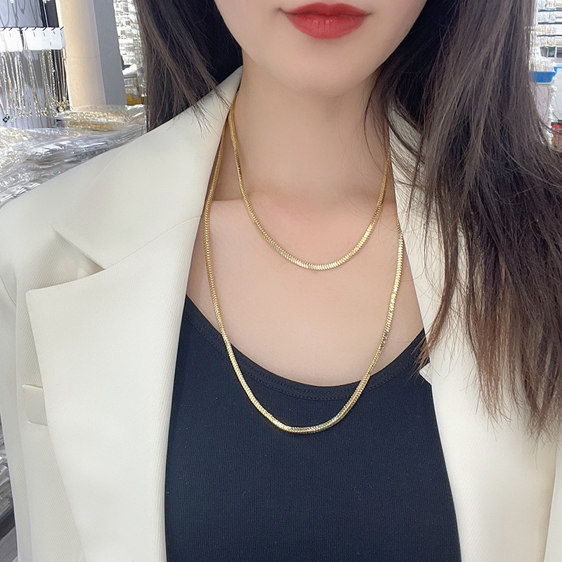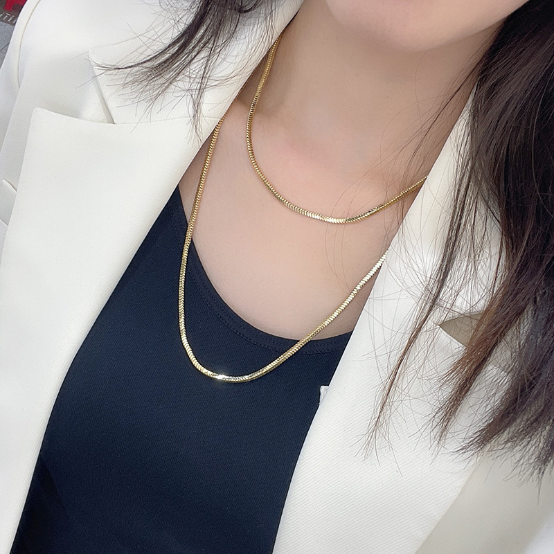 真空电镀18K多层女式金色蛇骨链气质双层毛衣链独立包装朋克项链