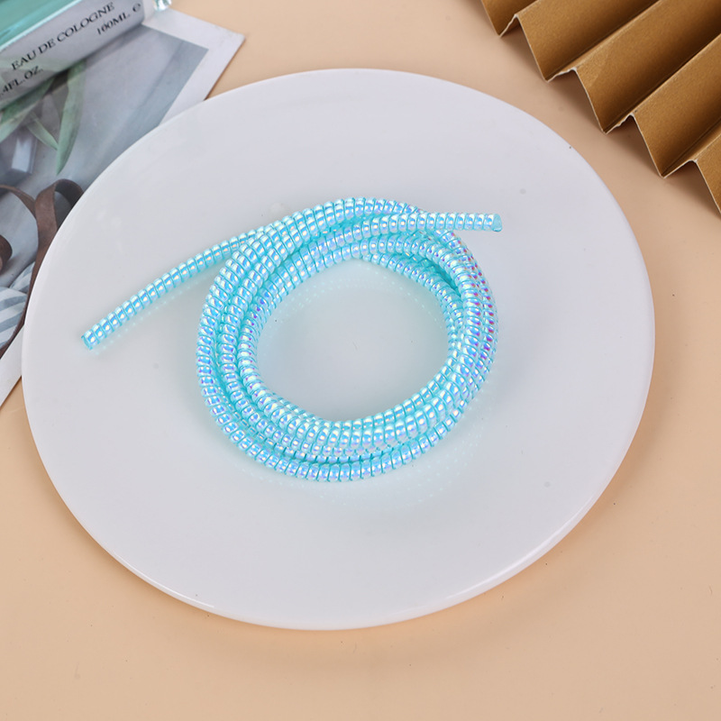 新品镭射手机数据线保护绳保护套数据线缠绕弹簧绳工厂直销1.4米