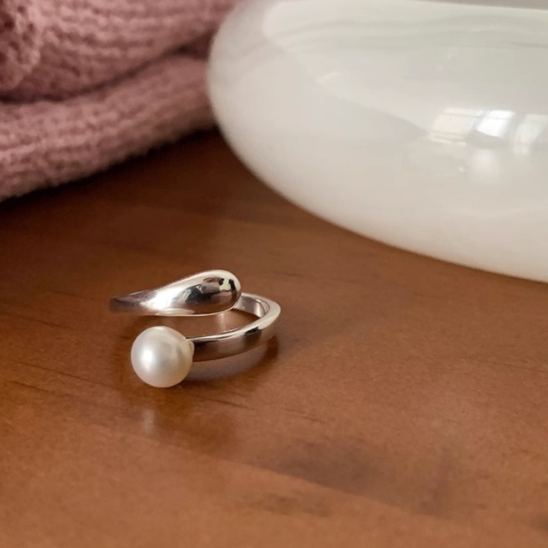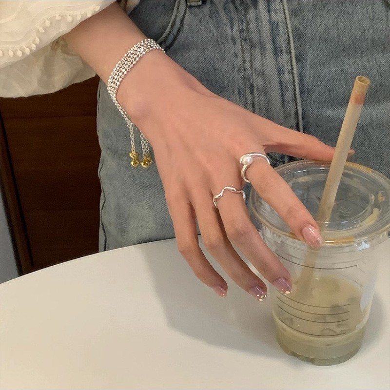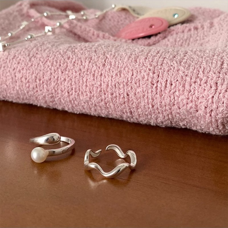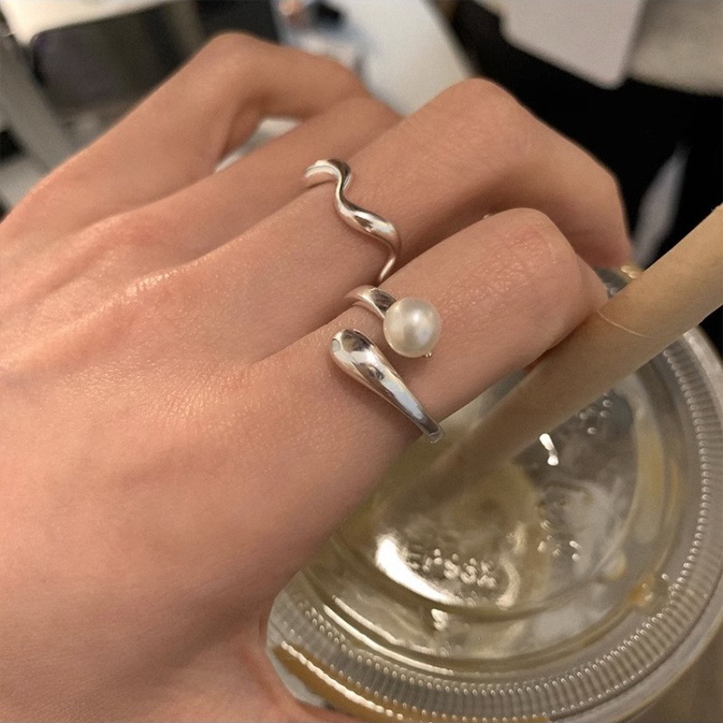 韩式韩版极简风珍珠波浪戒指女小众设计百搭款食指戒轻奢高级指环