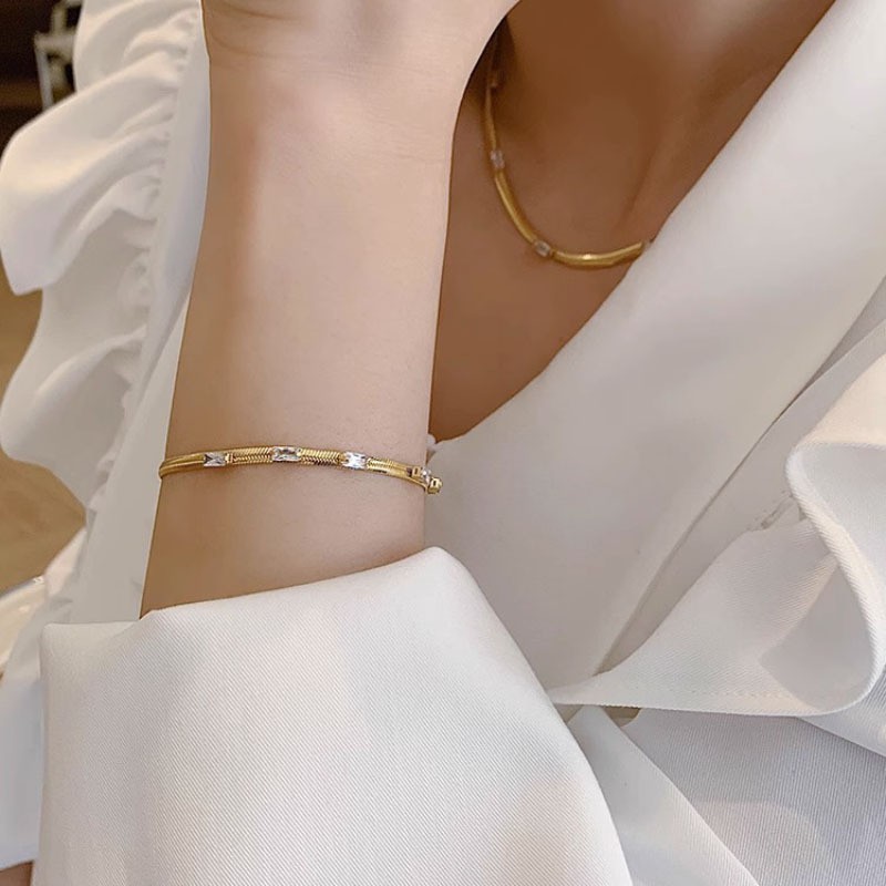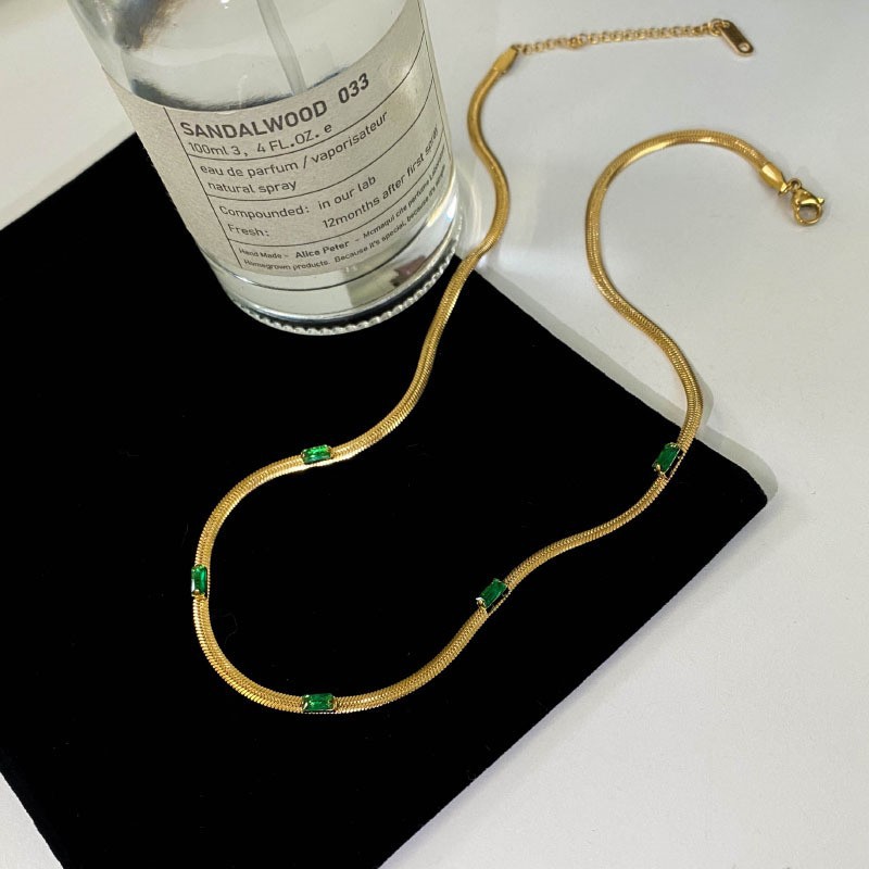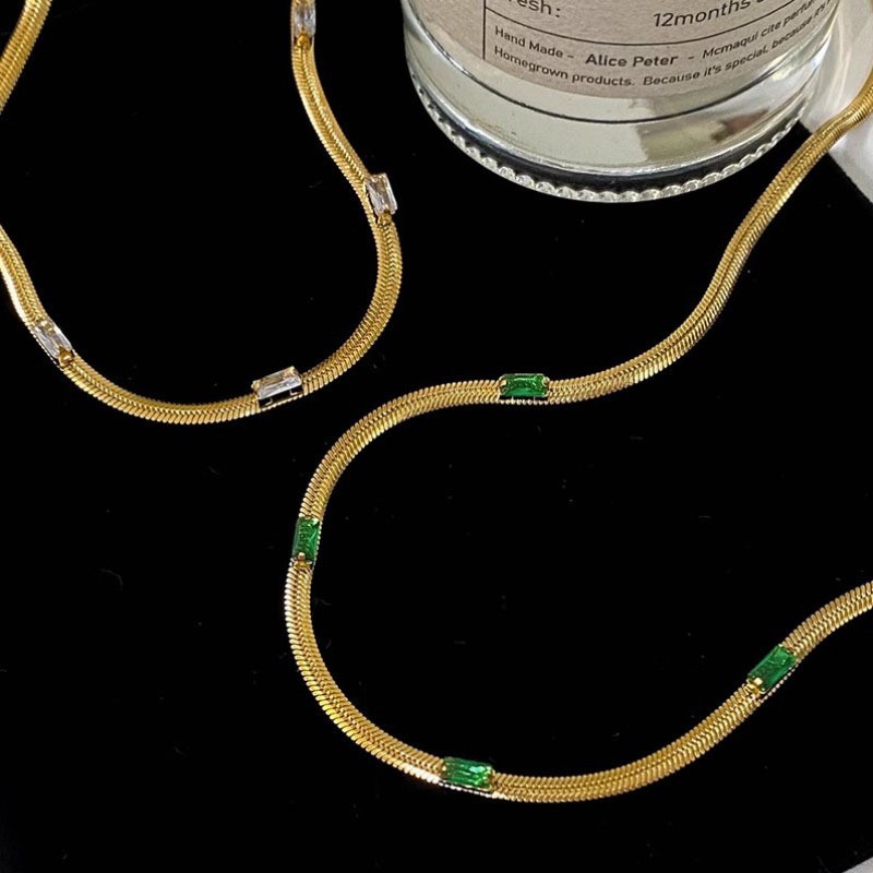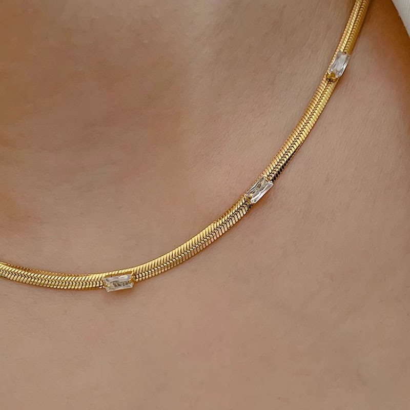 欧美ins冷淡风蛇骨链百搭项链女小众设计时尚镶钻复古金色锁骨链