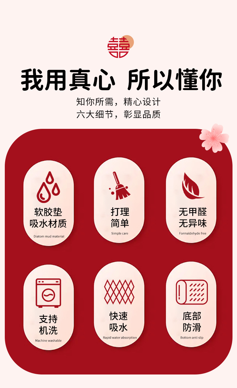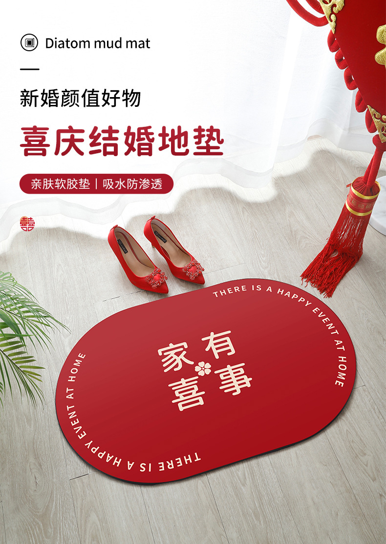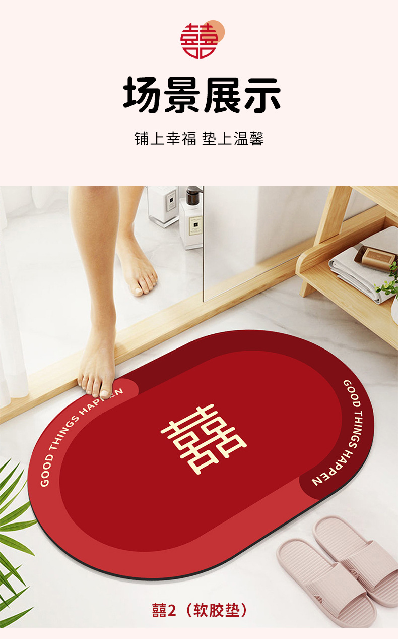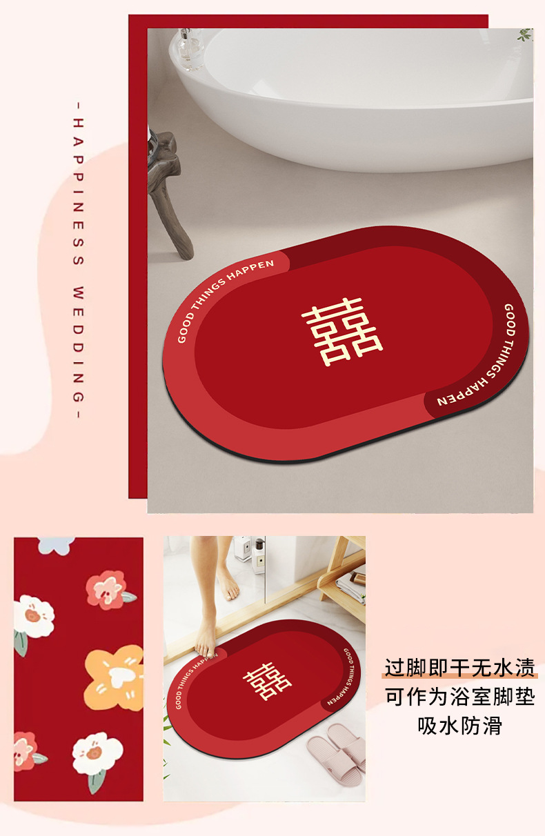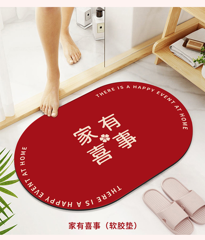 结婚浴室硅藻泥吸水速干垫卫生间厕所门口耐脏易清洗地垫厂家直供