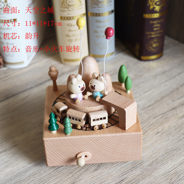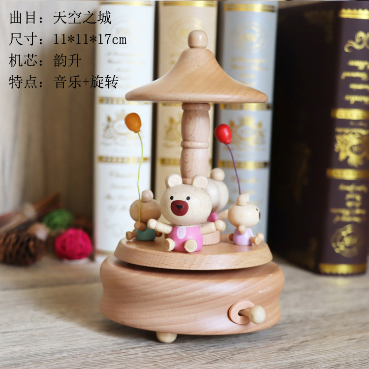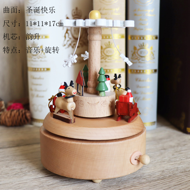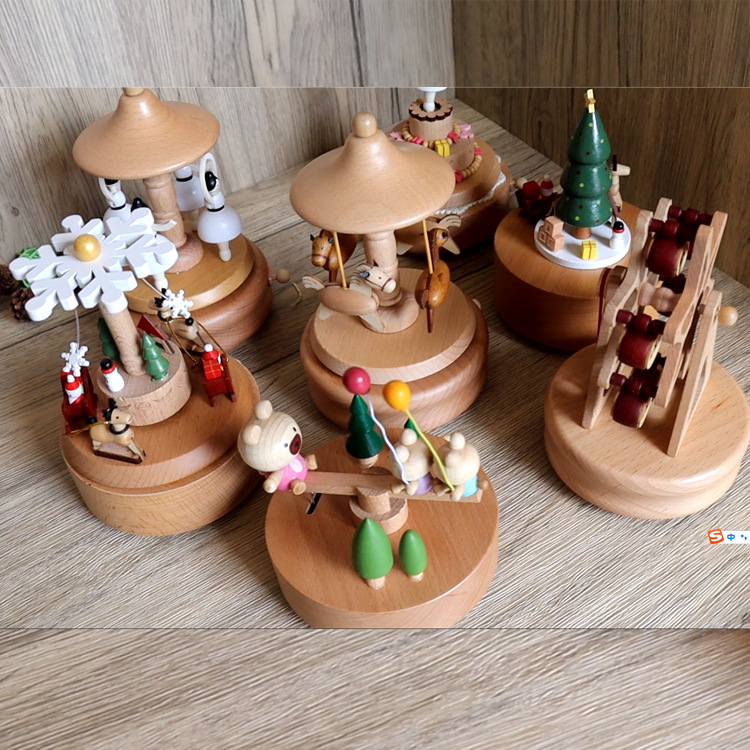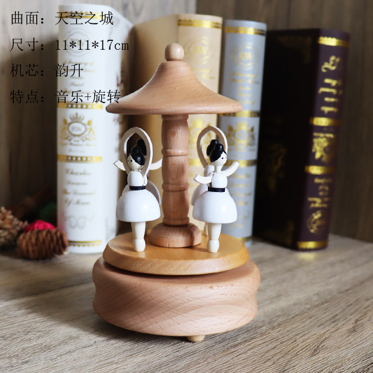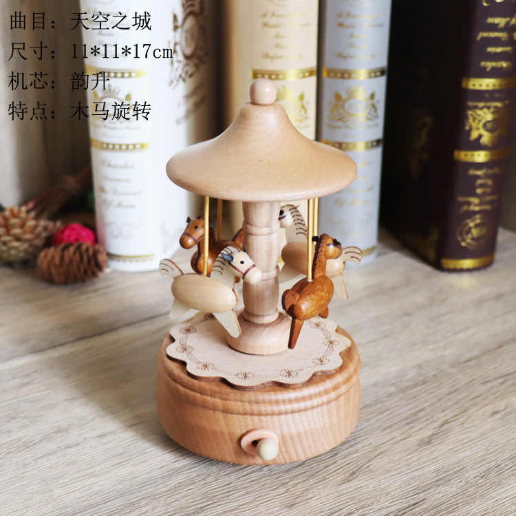 音乐盒手工木质八音盒创意实木旋转木马工艺品情人节礼品diy摆件