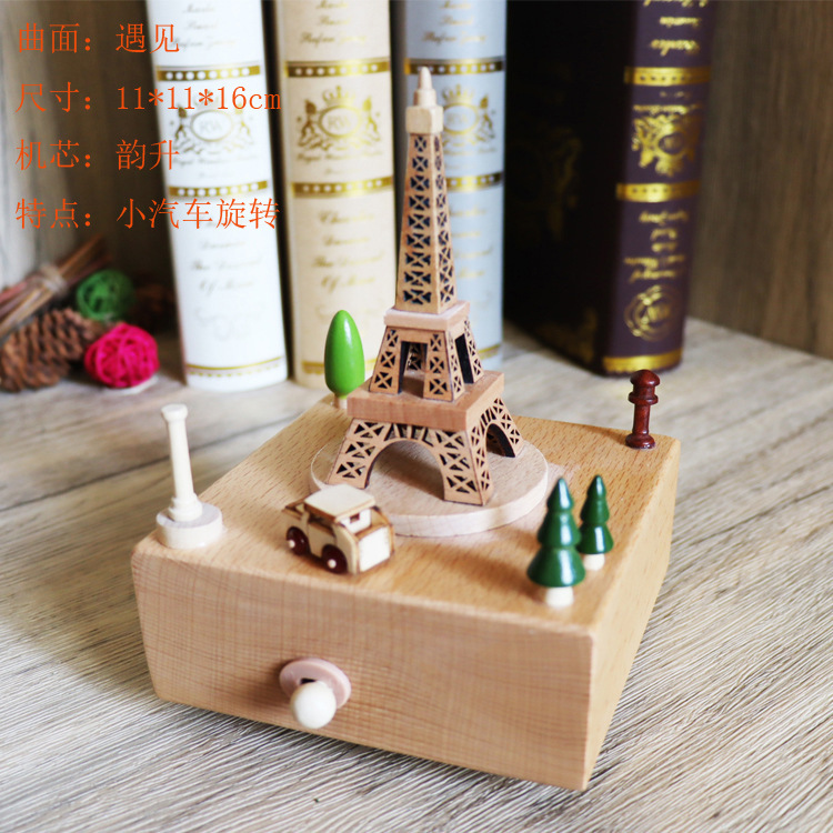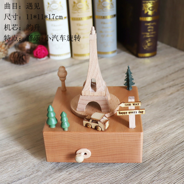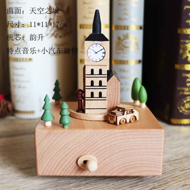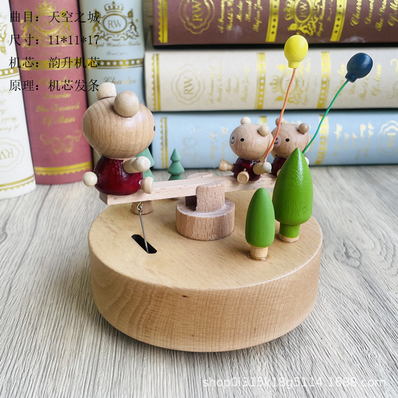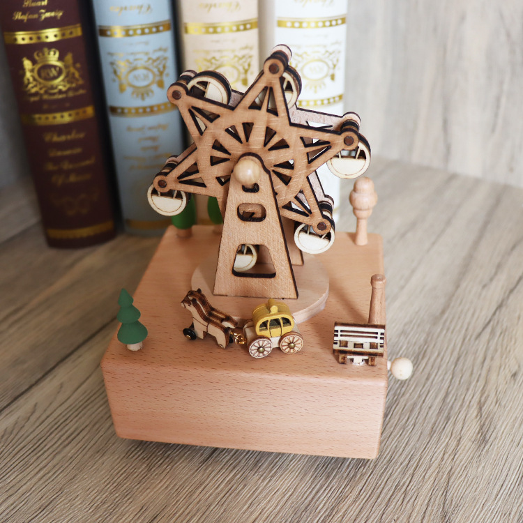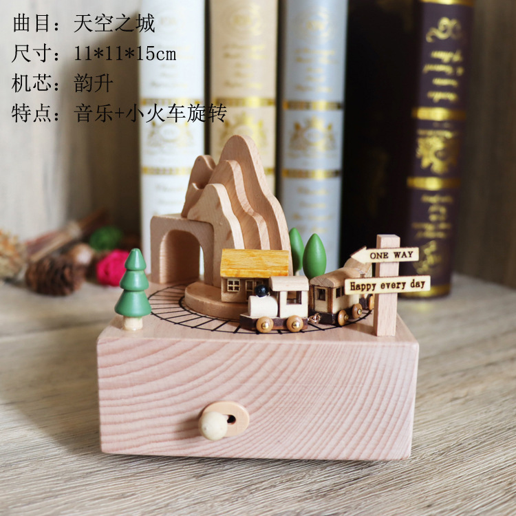 音乐盒手工木质八音盒创意实木旋转木马工艺品情人节礼品diy摆件