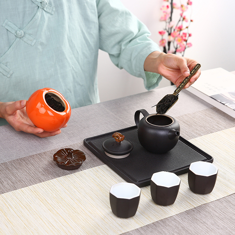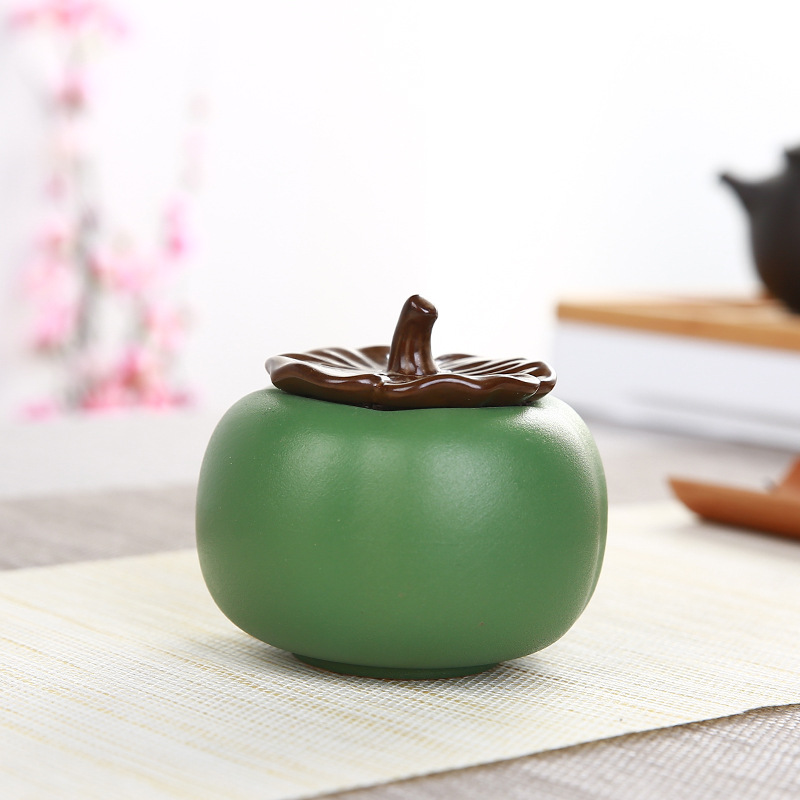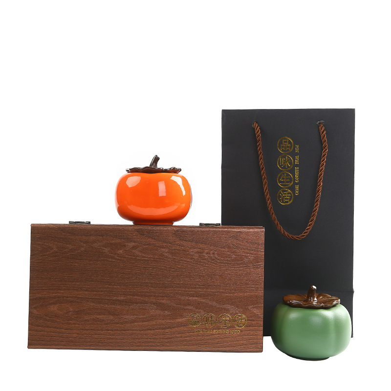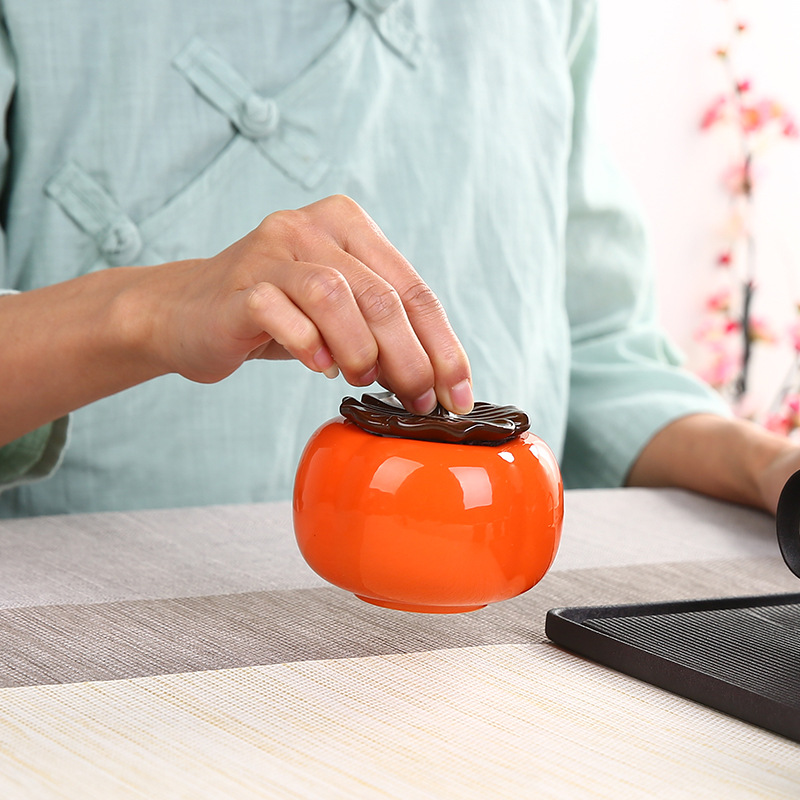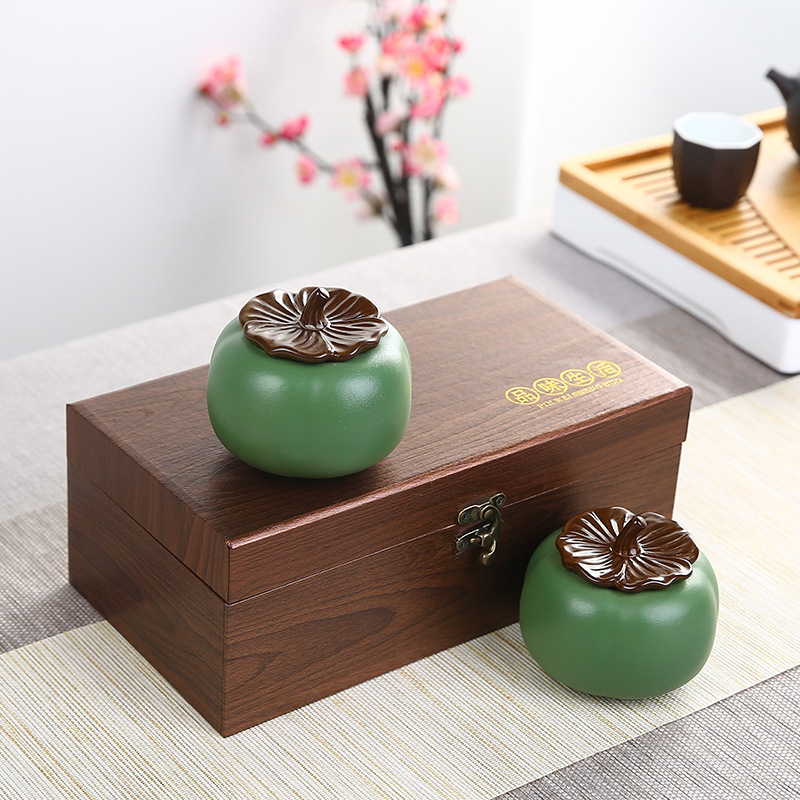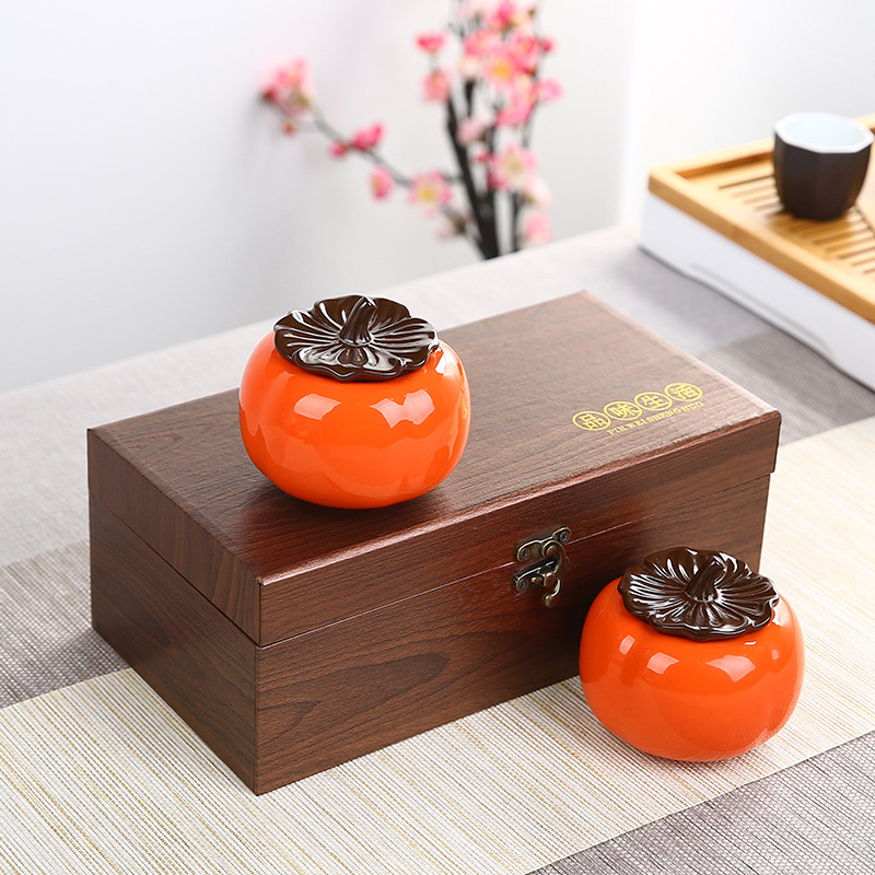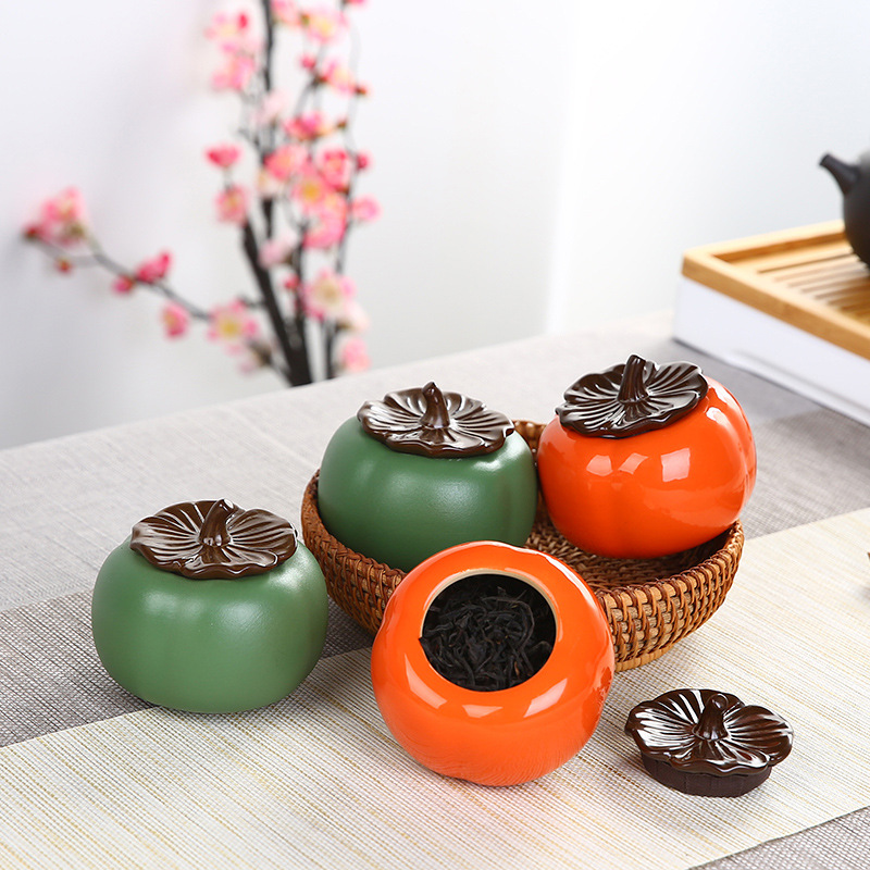 创意事事如意陶瓷柿子茶叶罐摆件小号家用茶仓好事成双伴手礼盒装