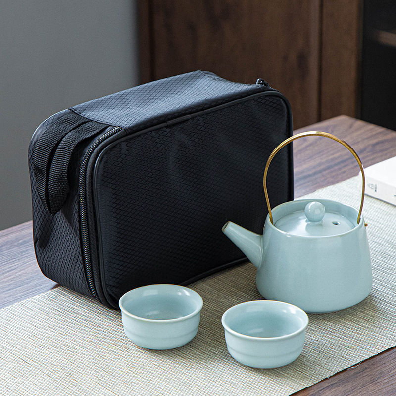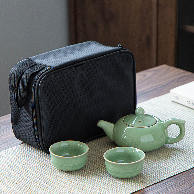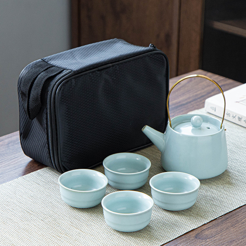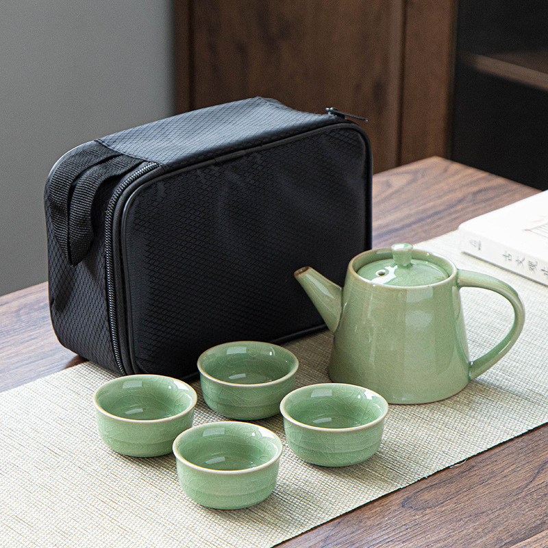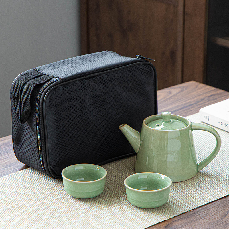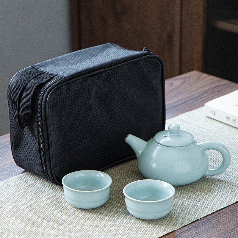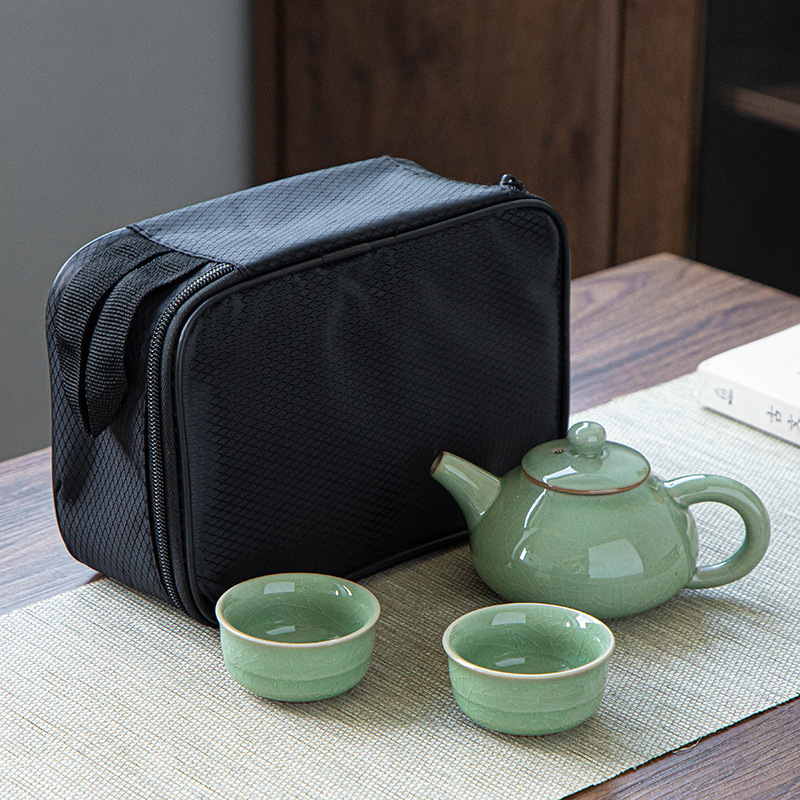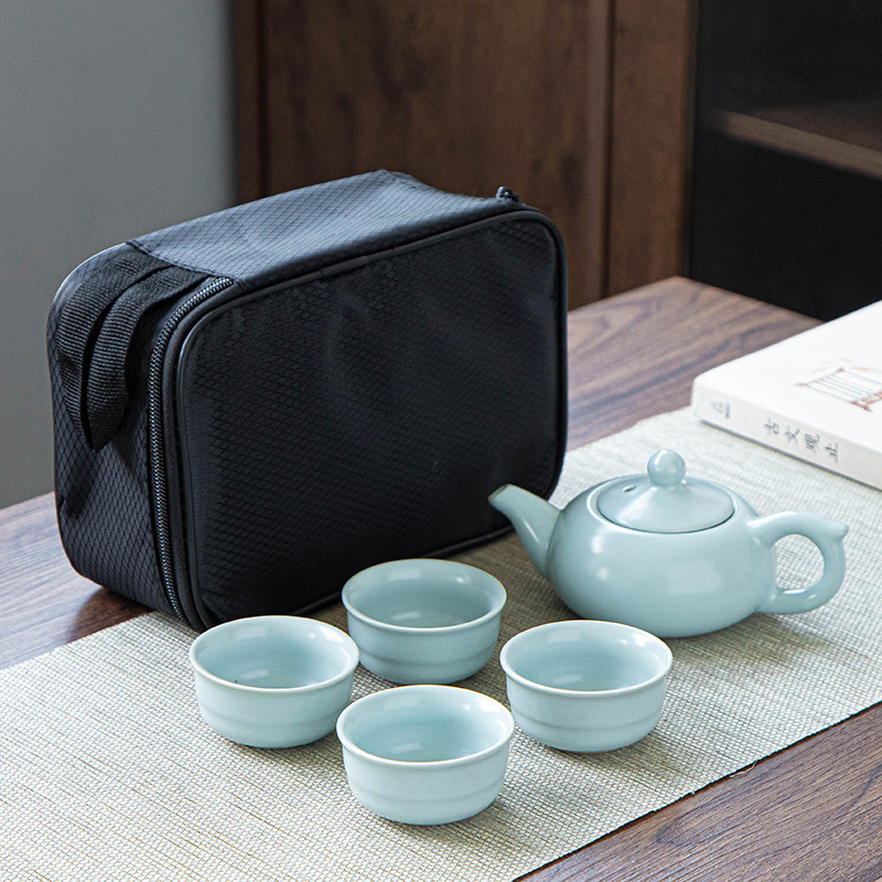 功夫茶具套装哥窑汝窑一壶四杯黑包、二杯礼品黑包套装可加印logo