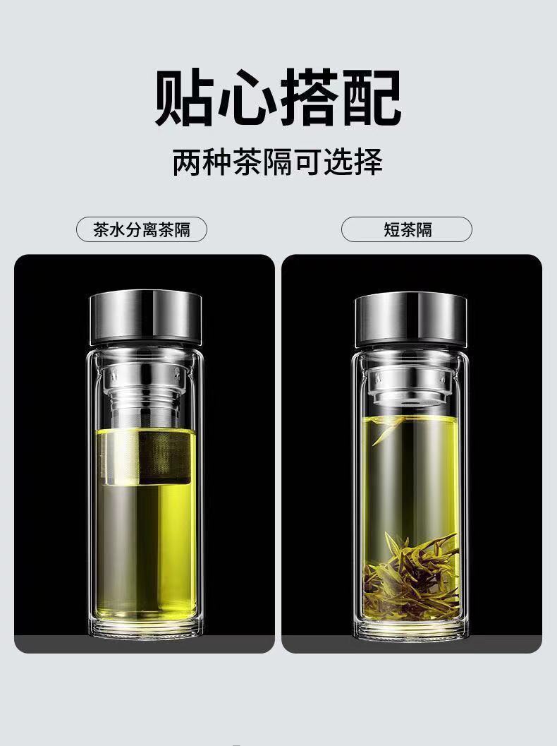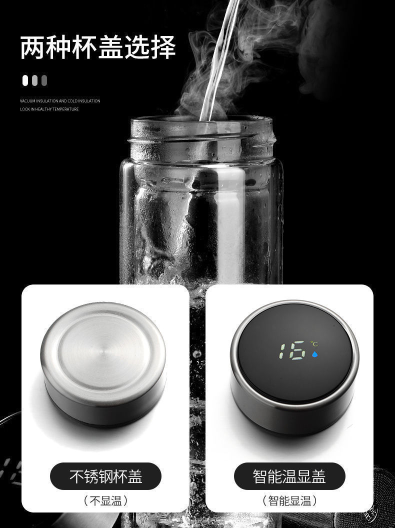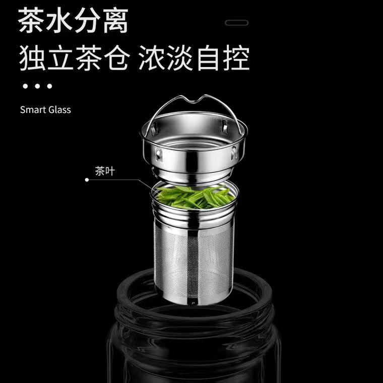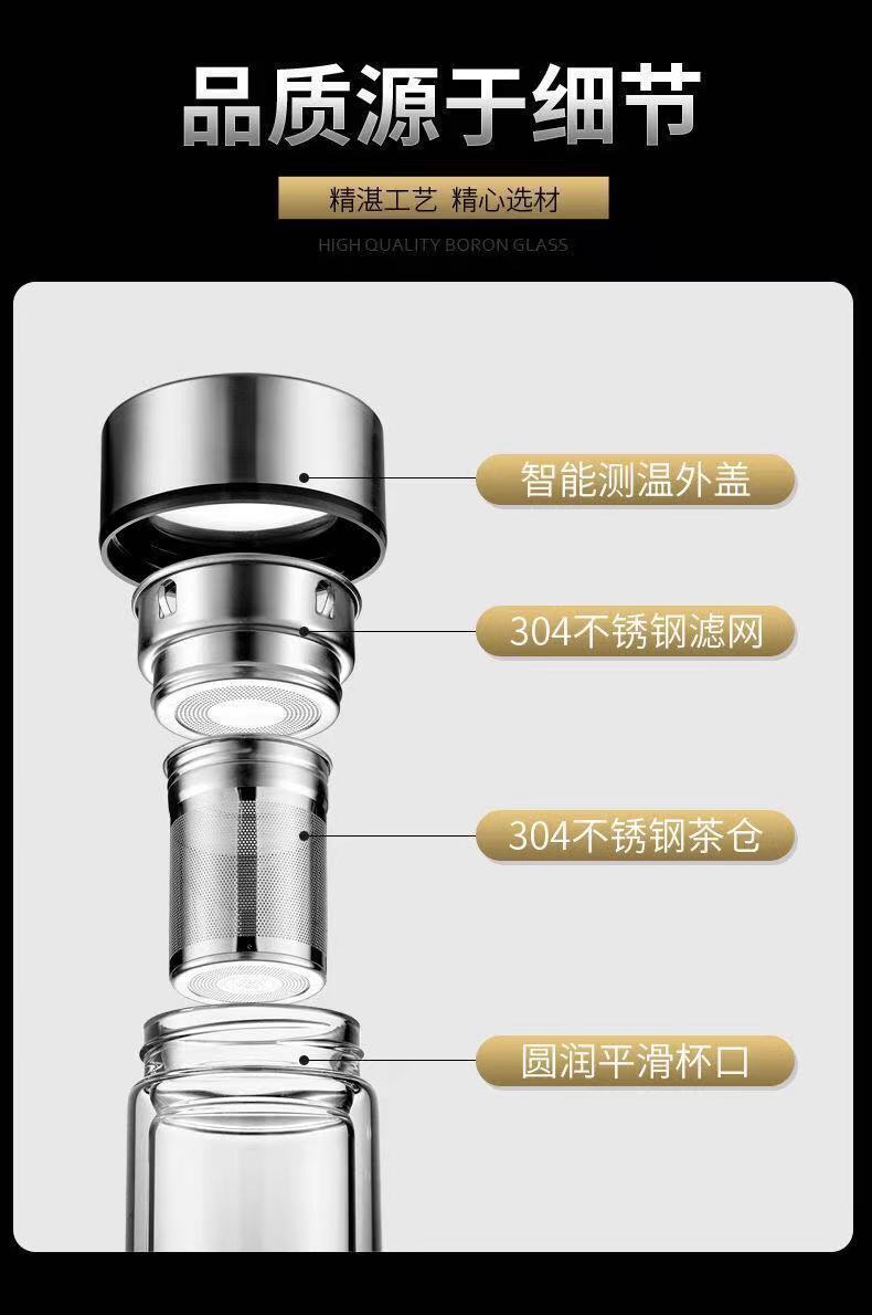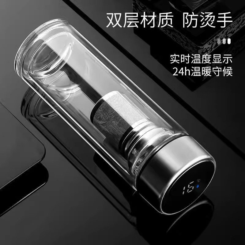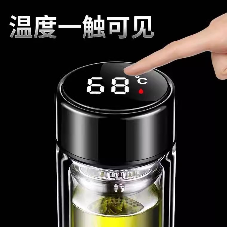 智能测温双层玻璃杯批发印字刻字加厚茶水分离泡茶杯子广告印logo