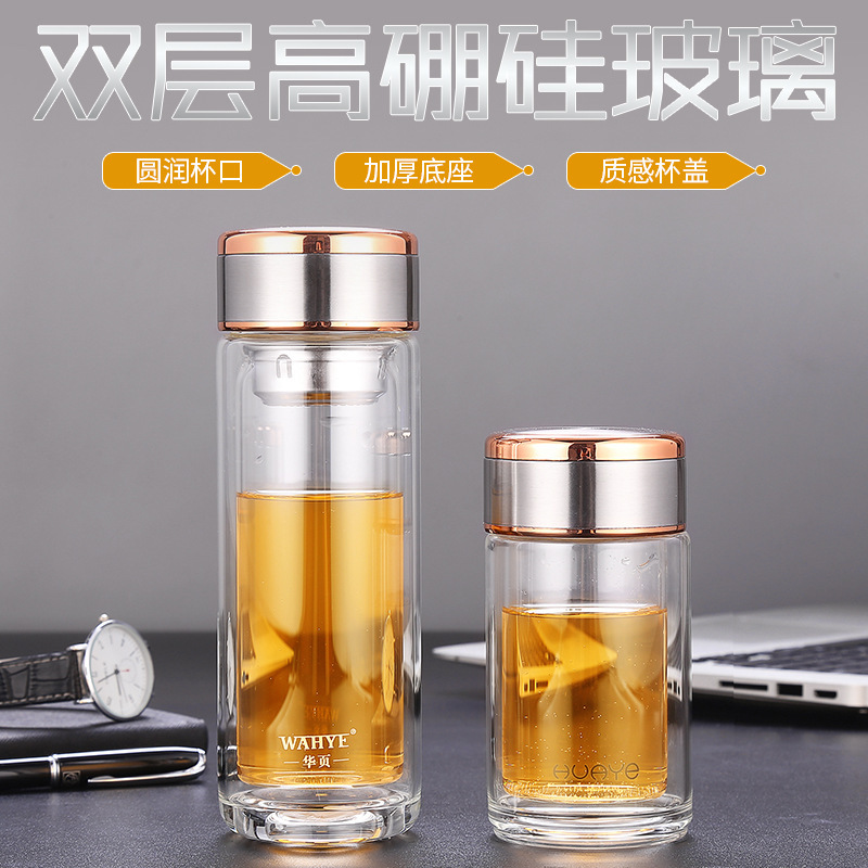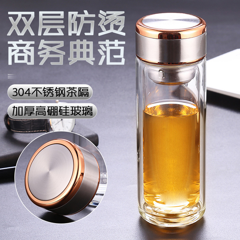 双层玻璃杯批发商务便携水杯隔热定 制logo印字家用办公泡茶杯子
